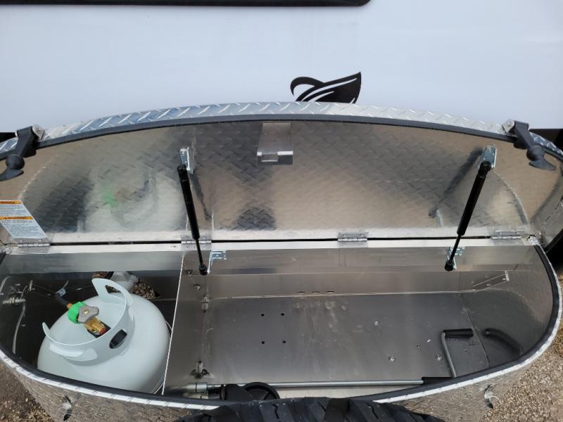 Whether you make plans or enjoy last-minute trips, this trailer offers all the essentials for a perfect weekend! There is an interior kitchen, wet bath, and dinette that offers seating and sleeping space. And the wet bath or the external shower will keep you clean and refreshed while camping. The optional Black Canyon Upgrade is available with this model, which offers dual 190-watt solar panels, holding tank heaters, XL diamond plate storage tub and underglow lights. If the Black Canyon Upgrade is chosen, the hitch weight will be 208 lbs. and the dry weight will be 2,109 lbs.; see dealer for more details!