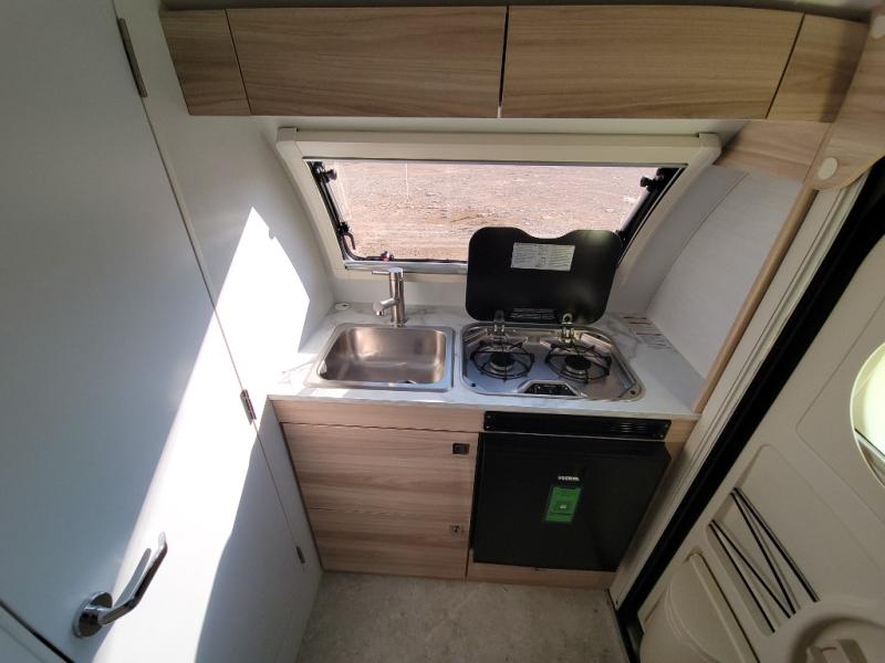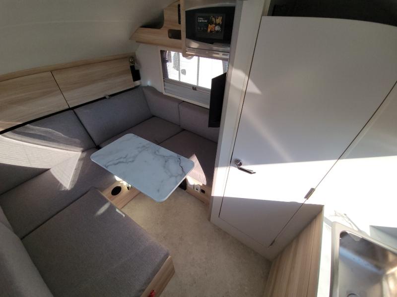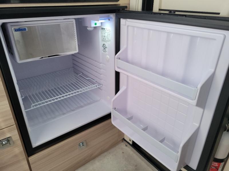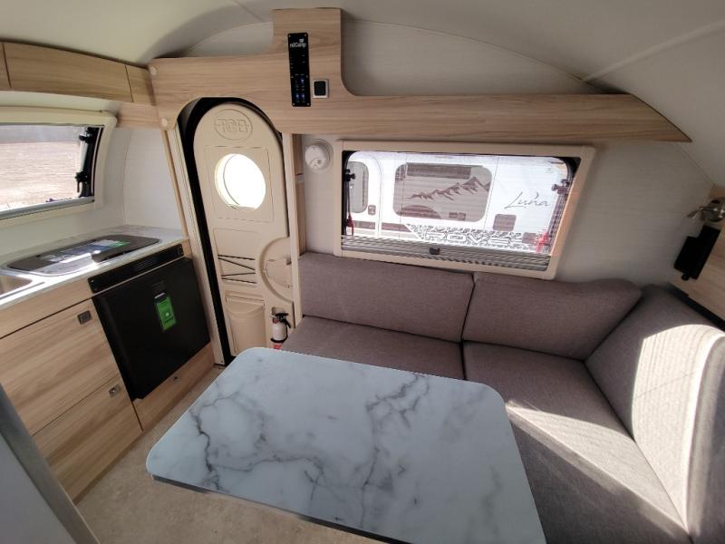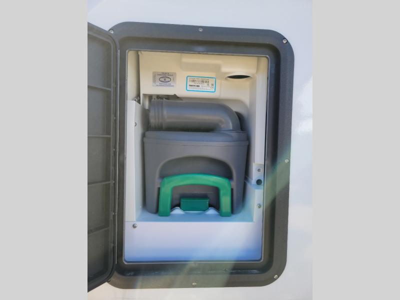 With any TAB 320 teardrop trailer by nuCamp RV, the interior offers premium soft-close cabinetry, a front window, plus a wet bath with a cassette toilet and a molded sink. They are also built with composite flooring and a molded underbelly shield for protection against rock and debris during your journeys. The iconic teardrop design offers an easy-to-tow unit with amenities found in much bigger trailers. Some other highlights include the Alde heating/hot water system, the central air conditioner, 180-watt solar panel, and the Nautilus water system with an external shower.