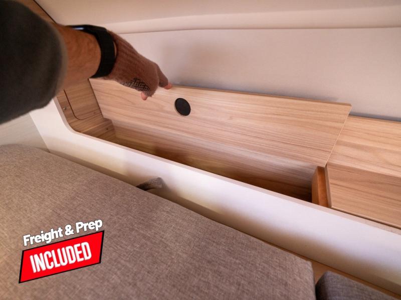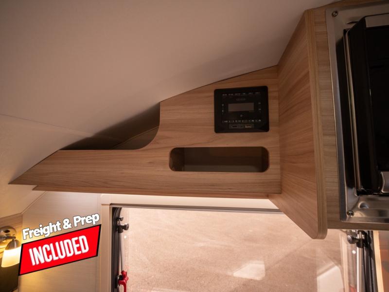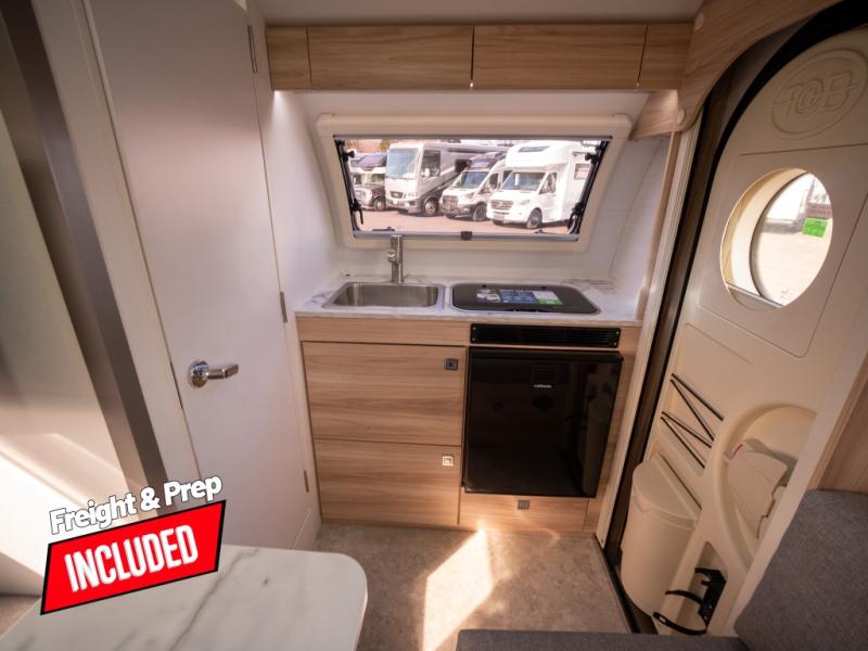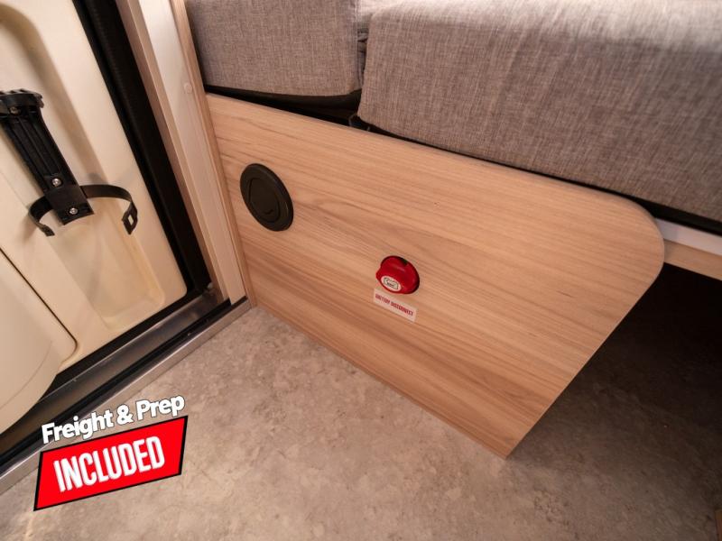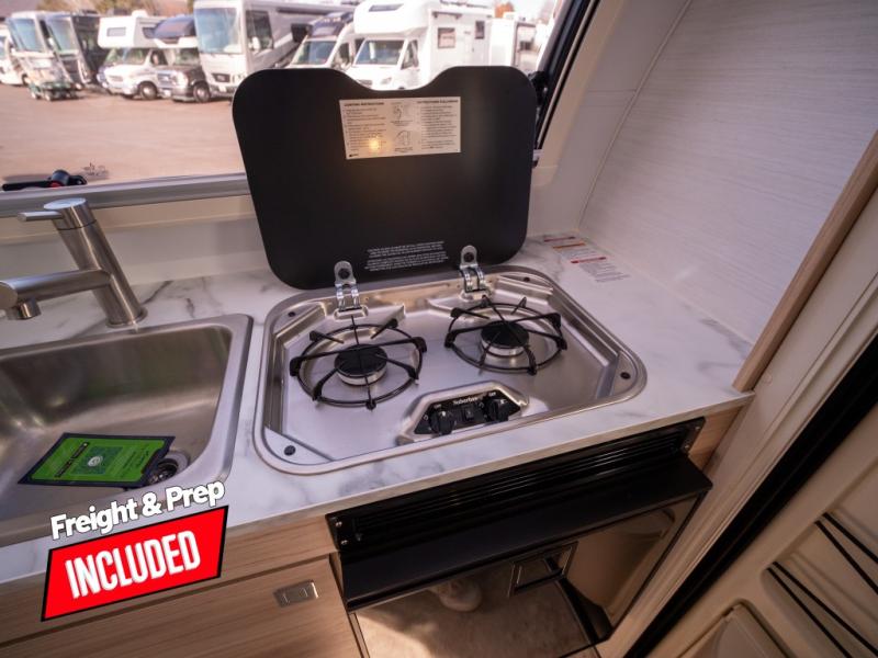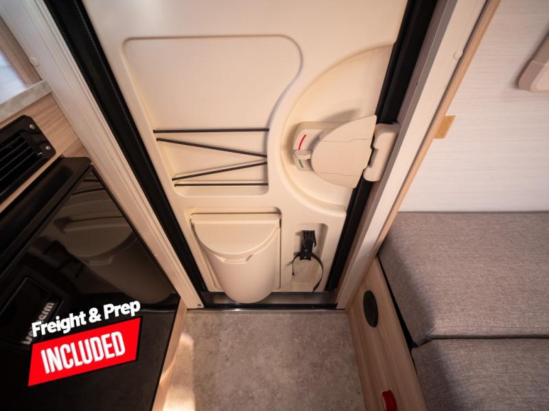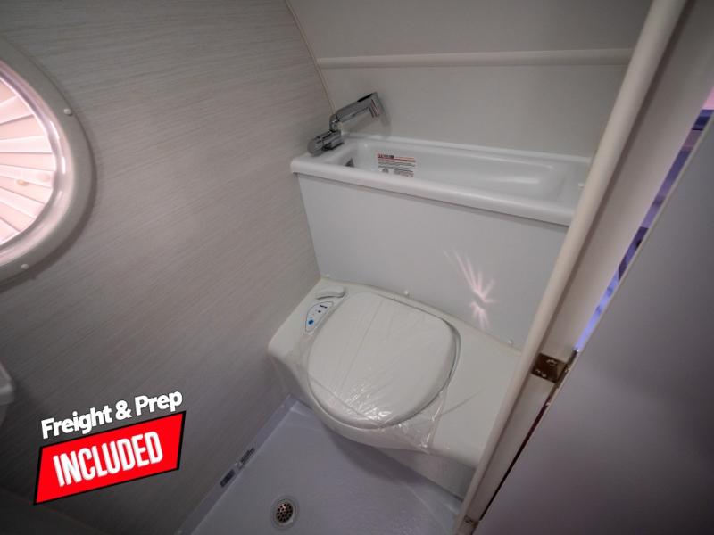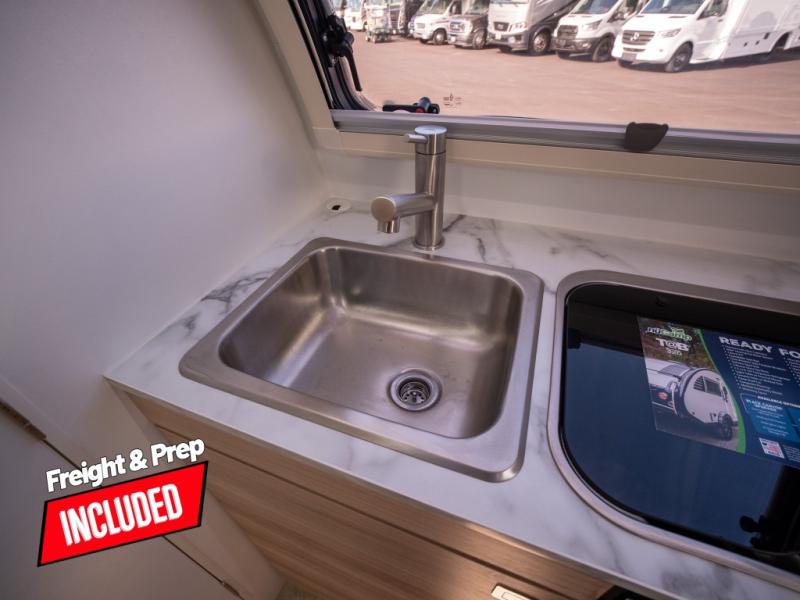 With any TAB 320 teardrop trailer by nuCamp RV, the interior offers premium soft-close cabinetry, a front window, plus a wet bath with a cassette toilet and a molded sink. They are also built with composite flooring and a molded underbelly shield for protection against rock and debris during your journeys. The iconic teardrop design offers an easy-to-tow unit with amenities found in much bigger trailers. Some other highlights include the Alde heating/hot water system, the central air conditioner, 180-watt solar panel, and the Nautilus water system with an external shower.