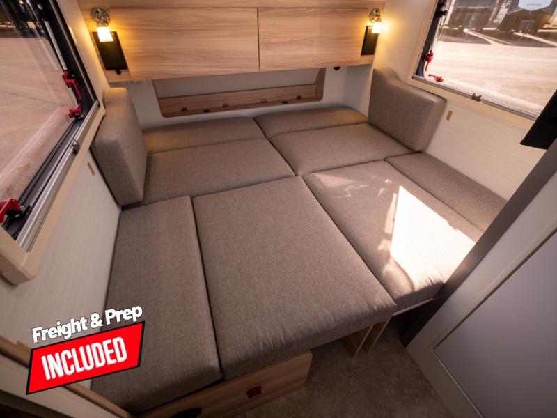 Whether you make plans or enjoy last-minute trips, this trailer offers all the essentials for a perfect weekend! There is an interior kitchen, wet bath, and dinette that offers seating and sleeping space. And the wet bath or the external shower will keep you clean and refreshed while camping. The optional Black Canyon Upgrade is available with this model, which offers dual 190-watt solar panels, holding tank heaters, XL diamond plate storage tub and underglow lights. If the Black Canyon Upgrade is chosen, the hitch weight will be 208 lbs. and the dry weight will be 2,109 lbs.; see dealer for more details!