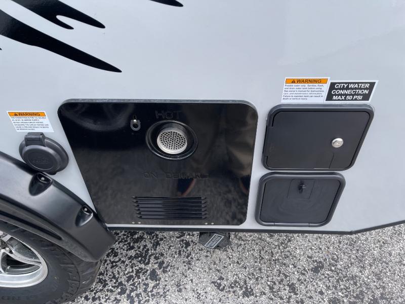 The TAB 320 LITE teardrop trailer by nuCamp RV offers a simple, more affordable, and more approachable way of camping. There is a molded underbelly shield, alloy wheels, aggressive off-road tires, plus Boondock molded fenders and a Boondock entry door handle and step. A front diamond plate storage tub will keep your camp gear secure, and a 180-watt solar panel will provide off-grid capabilities. This teardrop trailer features an LP furnace and an A/C unit, along with an LP water heater for added comfort. Inside, you will love the premium soft-close cabinetry, composite flooring, side porthole windows, and front window for great outdoor views.