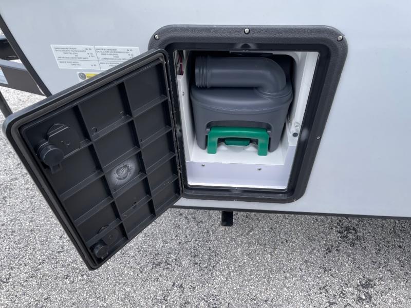 Hitch up and go at the drop of a hat with this cozy teardrop trailer! You will love how easy it will be to tow this unit, and you'll be surprised to find everything you need for hassle-free camping trips. An expandable split bed/dinette provides a place to relax, eat and sleep, and a two burner stove with a glass top will let you make meals inside when you don't want to cook over the campfire. You can choose to add an optional microwave for even more convenience, and the standard 12V compressor refrigerator will keep your cold items fresh. Easily freshen up each day in the wet bath that includes a cassette toilet with a molded sink.