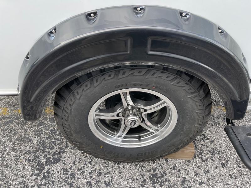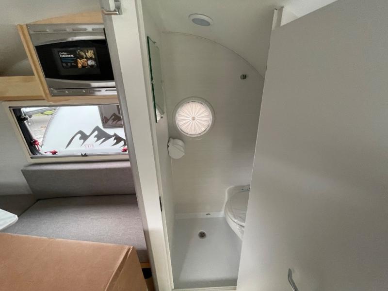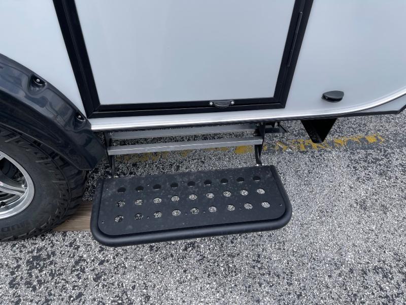 The TAB 320 LITE teardrop trailer by nuCamp RV offers a simple, more affordable, and more approachable way of camping. There is a molded underbelly shield, alloy wheels, aggressive off-road tires, plus Boondock molded fenders and a Boondock entry door handle and step. A front diamond plate storage tub will keep your camp gear secure, and a 180-watt solar panel will provide off-grid capabilities. This teardrop trailer features an LP furnace and an A/C unit, along with an LP water heater for added comfort. Inside, you will love the premium soft-close cabinetry, composite flooring, side porthole windows, and front window for great outdoor views.