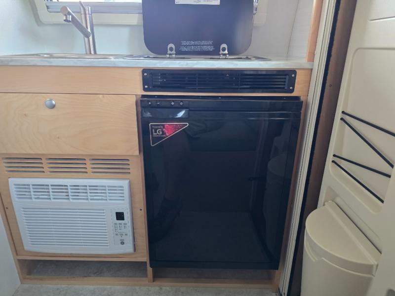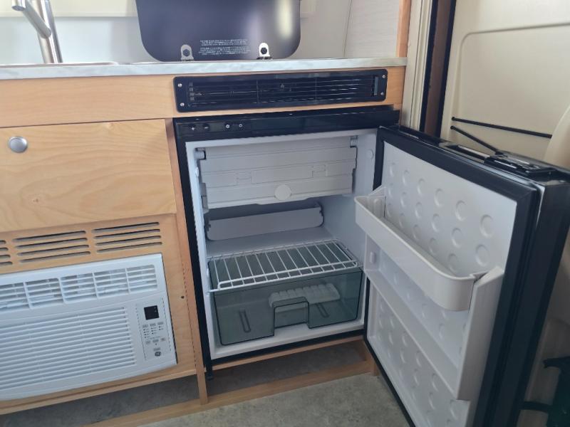 Hitch up and go at the drop of a hat with this cozy teardrop trailer! You will love how easy it will be to tow this unit, and you'll be surprised to find everything you need for hassle-free camping trips. An expandable split bed/dinette provides a place to relax, eat and sleep, and a two burner stove with a glass top will let you make meals inside when you don't want to cook over the campfire. You can choose to add an optional microwave for even more convenience, and the standard 12V compressor refrigerator will keep your cold items fresh. Easily freshen up each day in the wet bath that includes a cassette toilet with a molded sink.