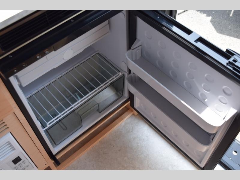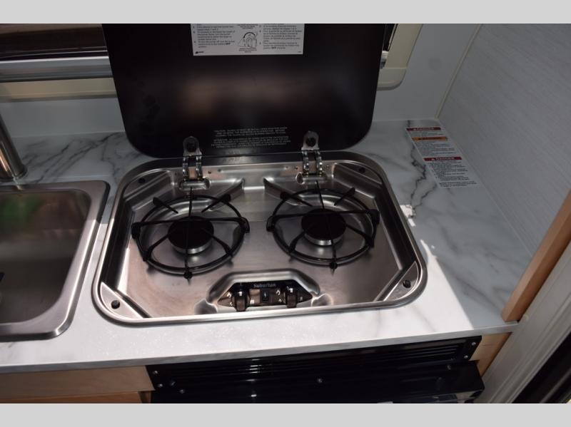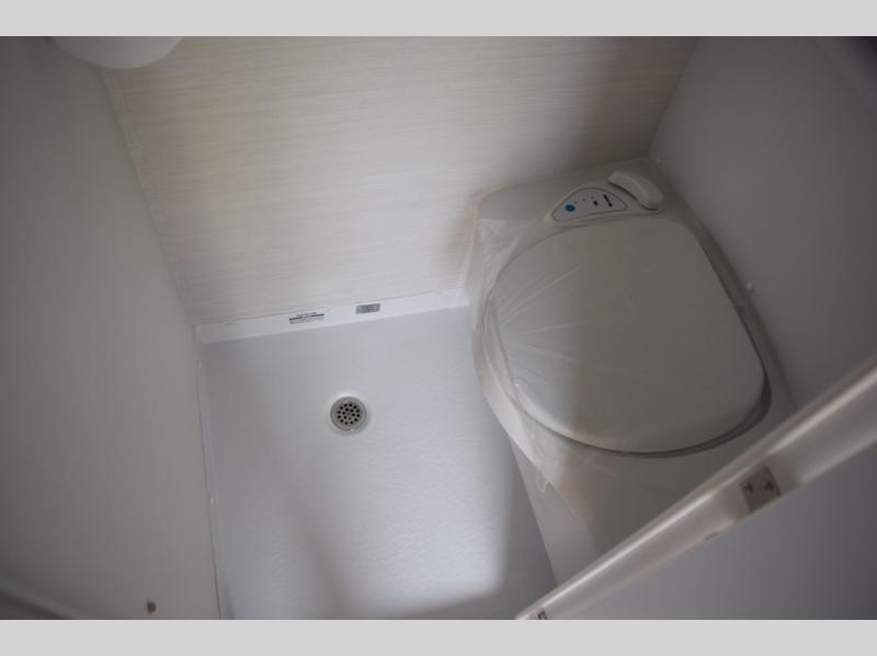 Hitch up and go at the drop of a hat with this cozy teardrop trailer! You will love how easy it will be to tow this unit, and you'll be surprised to find everything you need for hassle-free camping trips. An expandable split bed/dinette provides a place to relax, eat and sleep, and a two-burner stove with a glass top will let you make meals inside when you don't want to cook over the campfire. You can choose to add an optional microwave for even more convenience, and the standard 12V compressor refrigerator will keep your cold items fresh. Easily freshen up each day in the wet bath that includes a cassette toilet with a molded sink.