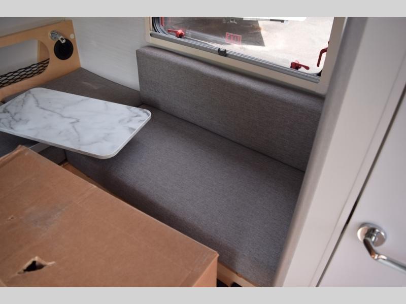 The TAB 320 LITE teardrop trailer by nuCamp RV offers a simple, more affordable, and more approachable way of camping. There is a molded underbelly shield, alloy wheels, aggressive off-road tires, plus Boondock molded fenders and a Boondock entry door handle and step. A front diamond plate storage tub will keep your camp gear secure, and a 120-watt solar panel will provide off-grid capabilities. This teardrop trailer features an LP furnace and an A/C unit, along with an LP water heater for added comfort. Inside, you will love the premium soft-close cabinetry, composite flooring, side porthole windows, and front window for great outdoor views.