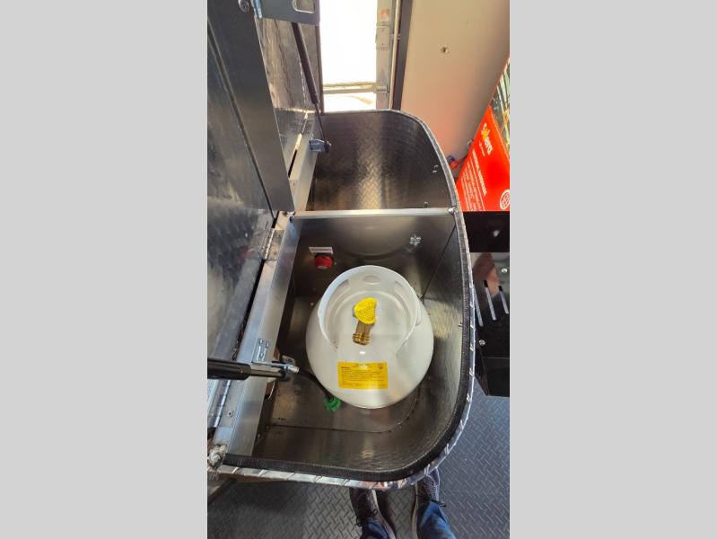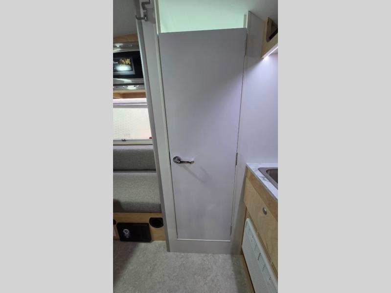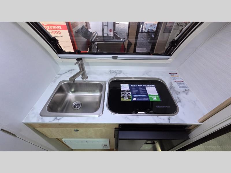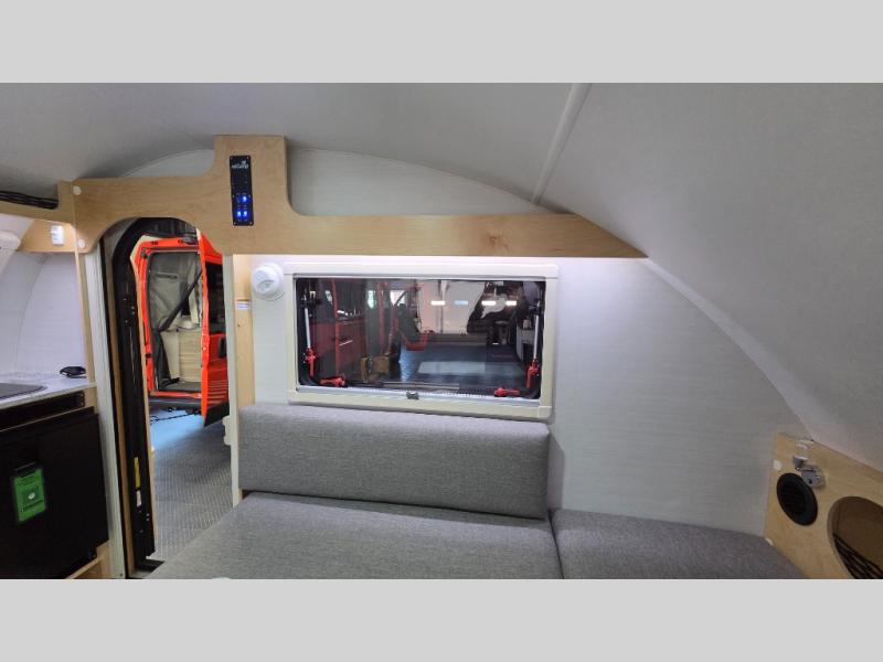The TAB 320 LITE teardrop trailer by nuCamp RV offers a simple, more affordable, and more approachable way of camping. There is a molded underbelly shield, alloy wheels, aggressive off-road tires, plus Boondock molded fenders and a Boondock entry door handle and step. A front diamond plate storage tub will keep your camp gear secure, and a 120-watt solar panel will provide off-grid capabilities. This teardrop trailer features an LP furnace and an A/C unit, along with an LP water heater for added comfort. Inside, you will love the premium soft-close cabinetry, composite flooring, side porthole windows, and front window for great outdoor views.