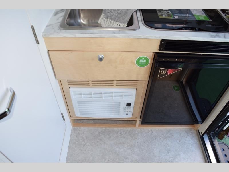 The TAB 320 LITE teardrop trailer by nuCamp RV offers a simple, more affordable, and more approachable way of camping. There is a molded underbelly shield, alloy wheels, aggressive off-road tires, plus Boondock molded fenders and a Boondock entry door handle and step. A front diamond plate storage tub will keep your camp gear secure, and a 120-watt solar panel will provide off-grid capabilities. This teardrop trailer features an LP furnace and an A/C unit, along with an LP water heater for added comfort. Inside, you will love the premium soft-close cabinetry, composite flooring, side porthole windows, and front window for great outdoor views.