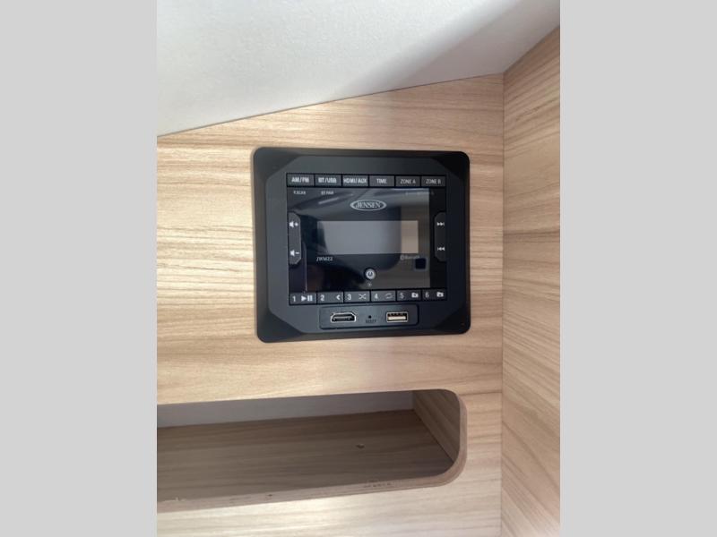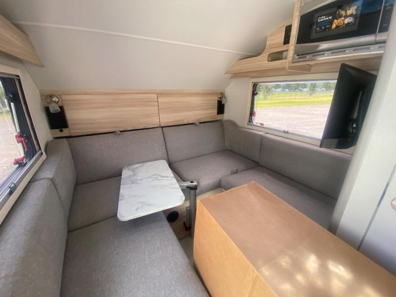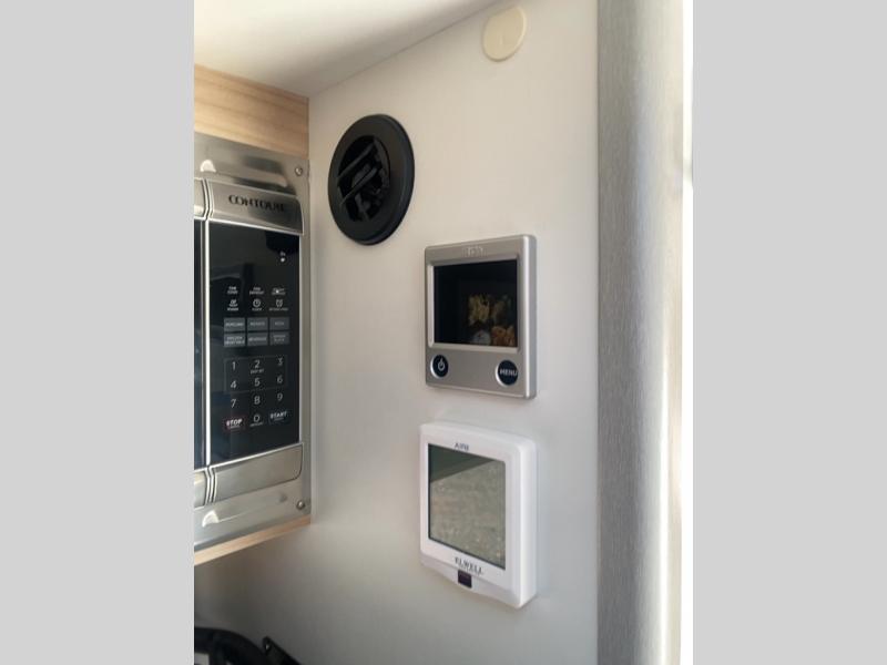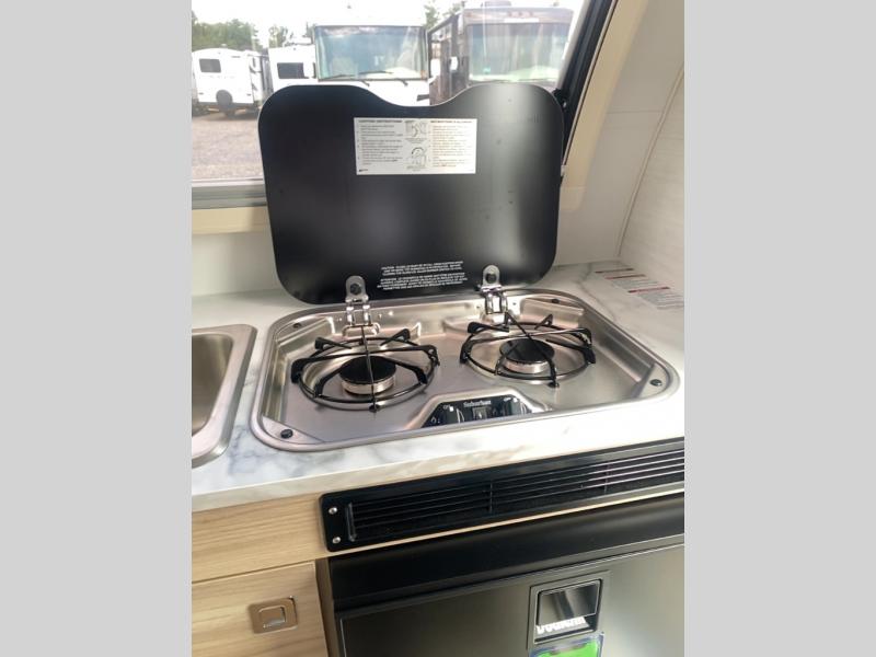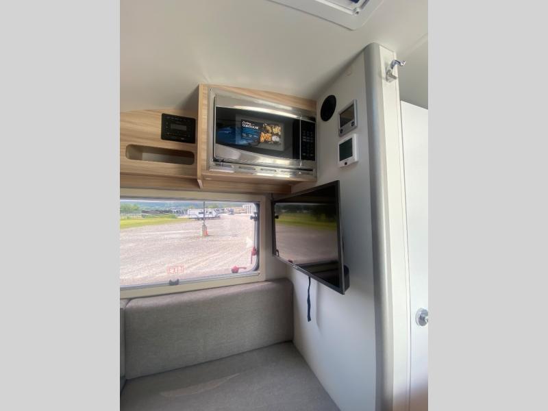 With any TAB 320 teardrop trailer by nüCamp RV, the interior offers premium soft-close cabinetry, a front window, plus a wet bath with a cassette toilet and a molded sink. They are also built with composite flooring and a molded underbelly shield for protection against rock and debris during your journeys. The iconic teardrop design offers an easy-to-tow unit with amenities found in much bigger trailers. Some other highlights include the Alde heating/hot water system, the central air conditioner, 180 watt solar panel, and the Nautilus water system with an external shower.