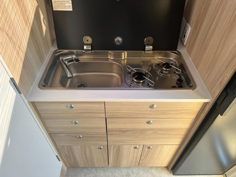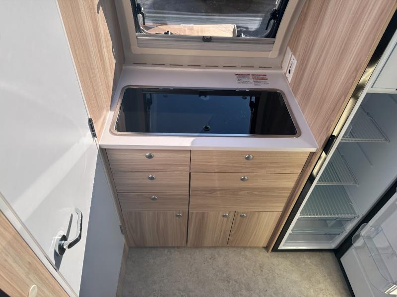 If you enjoy lightweight camping, this teardrop trailer is for you! Everything you need for trips to the lake will be right there with you, including a convenient wet bath with a cassette toilet. The twin bed set up gives you cozy sleeping space, and they can convert to a dinette on one side with extra seating on the other side! There are stargazer windows to give you great views of your surroundings, and the open floorplan will have you feeling right at home. A glass top sink and two burner cooktop combo will let you cook meals each day, and the 5-cu. ft. 12V compressor refrigerator will be perfect for perishables. There is an optional Black Canyon upgrade available that comes with a solar upgraded to dual 190-watt panels, holding tank heaters, underglow lights, and an XL diamond plate storage tub.