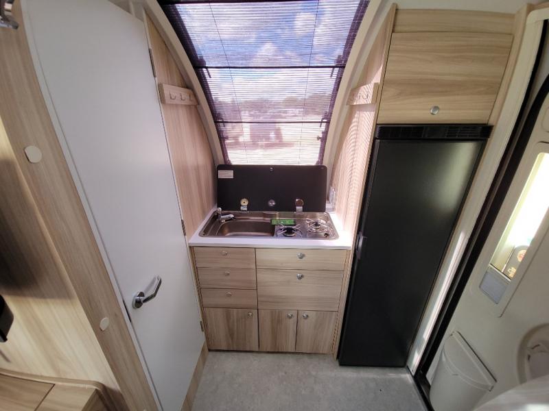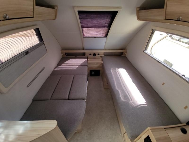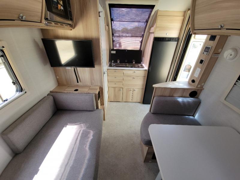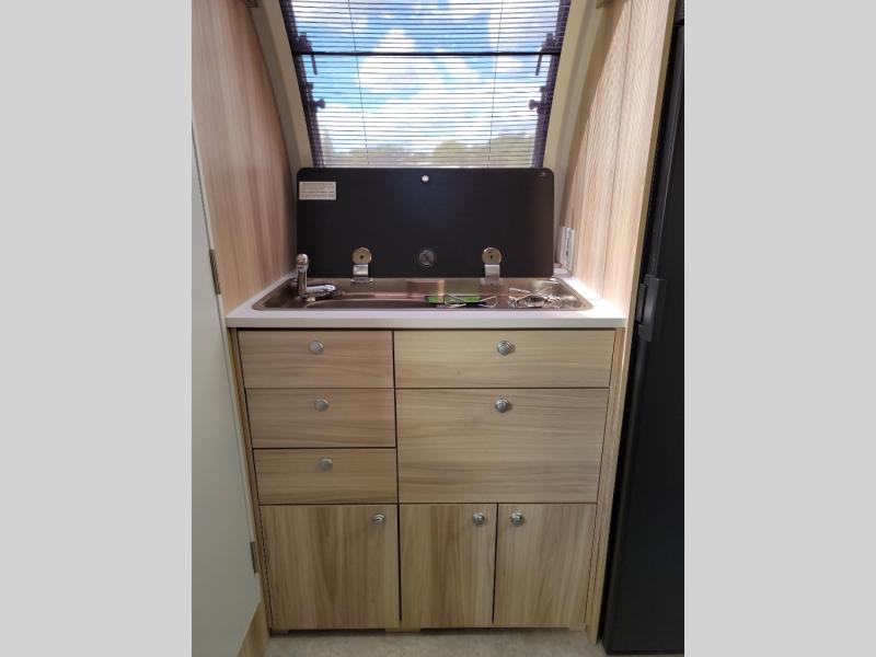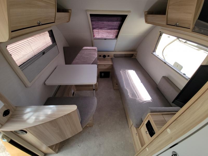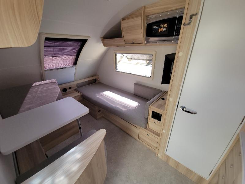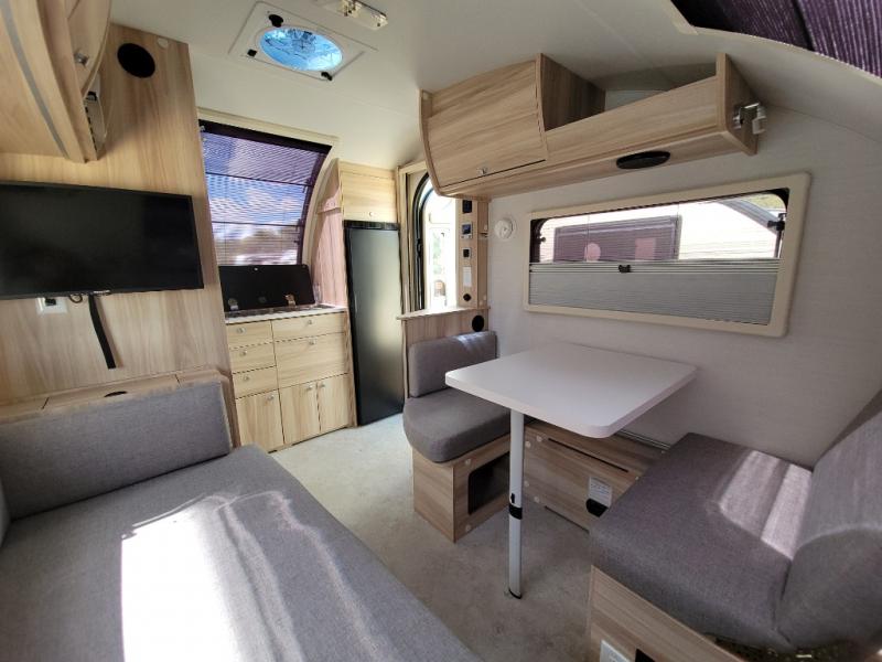 If you enjoy lightweight camping, this teardrop trailer is for you! Everything you need for trips to the lake will be right there with you, including a convenient wet bath with a cassette toilet. The twin bed set up gives you cozy sleeping space, and they can convert to a dinette on one side with extra seating on the other side! There are stargazer windows to give you great views of your surroundings, and the open floorplan will have you feeling right at home. A glass top sink and two burner cooktop combo will let you cook meals each day, and the 5.0 cu. ft. 12V compressor refrigerator will be perfect for perishables. If the optional Black Canyon upgrade is chosen, the tongue weight will be 386 lbs. and the gross dry weight will be 2,729 lbs. See dealer for more details!