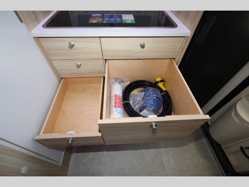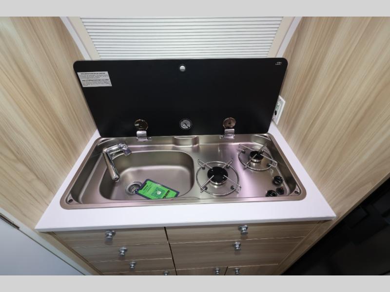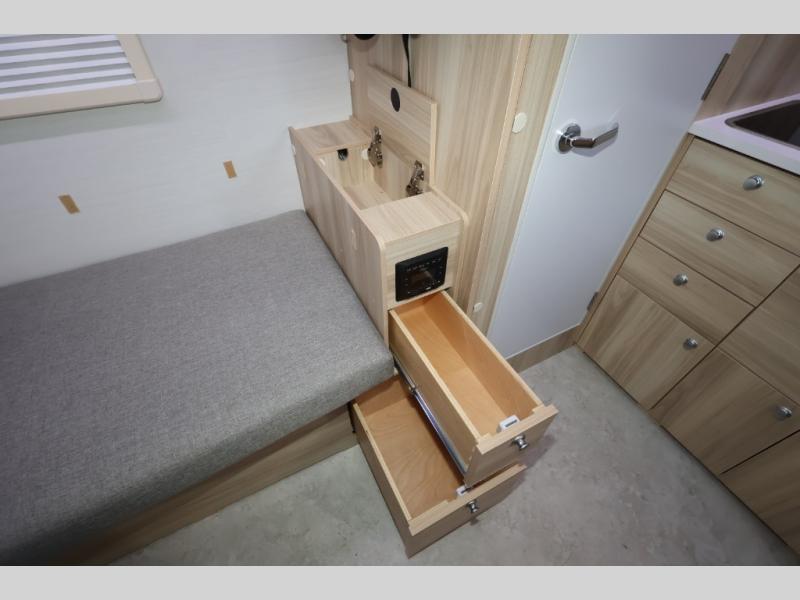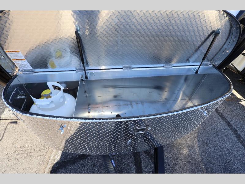 If you enjoy lightweight camping, this teardrop trailer is for you! Everything you need for trips to the lake will be right there with you, including a convenient wet bath with a cassette toilet. The twin bed set up gives you cozy sleeping space, and they can convert to a dinette on one side with extra seating on the other side! There are stargazer windows to give you great views of your surroundings, and the open floorplan will have you feeling right at home. A glass top sink and two burner cooktop combo will let you cook meals each day, and the 5-cu. ft. 12V compressor refrigerator will be perfect for perishables. There is an optional Black Canyon upgrade available that comes with a solar upgraded to dual 190-watt panels, holding tank heaters, underglow lights, and an XL diamond plate storage tub.