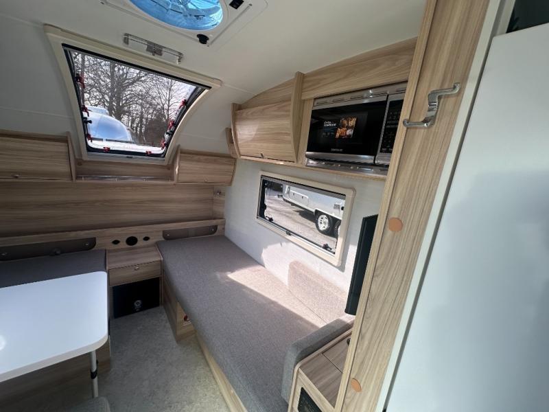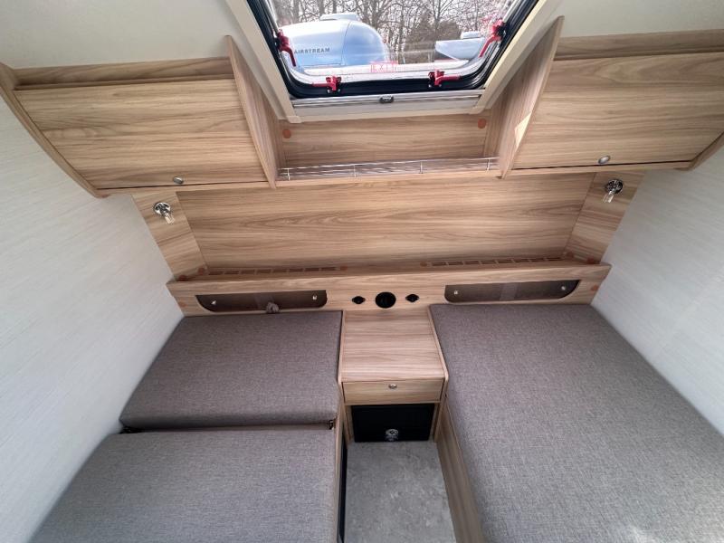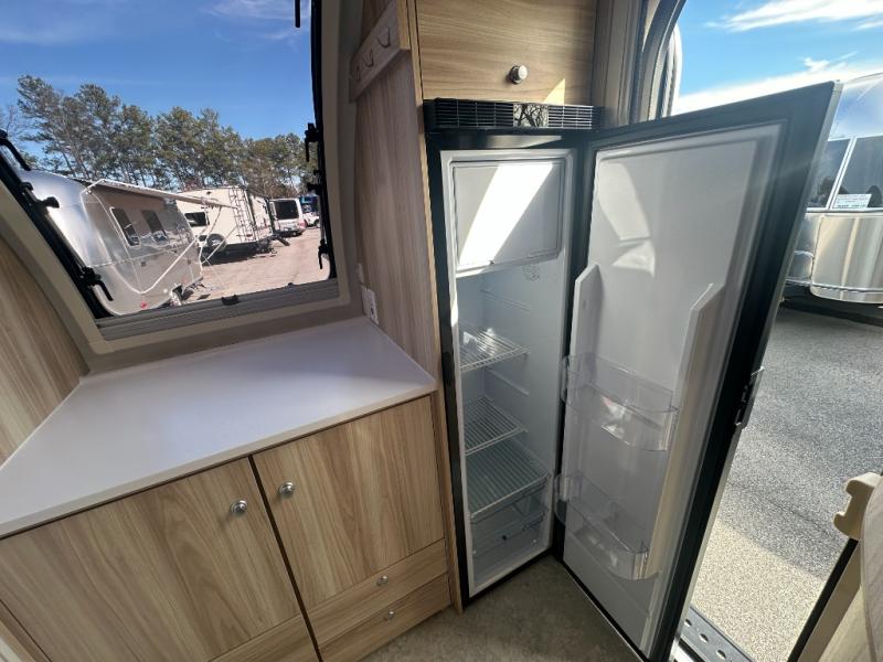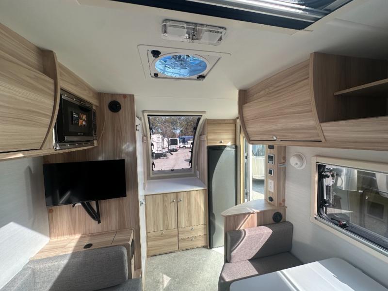 You're going to love camping in this teardrop clamshell trailer! Once you arrive at the campground, you can make lunch on the exterior rear hatch kitchen. There is a two-burner glass-top stove and a 30L 12-volt cooler here to quickly make lunch and grab a cold drink. The interior 5 cu. ft. 12-volt compressor refrigerator will provide more food storage, and an optional microwave can be added inside for the option to heat up quick meals indoors. You're sure to get a great night's rest on the twin-size bed, and the booth dinette can convert to a second twin-size bed so you can sleep two comfortably. The optional Black Canyon Upgrade can be added that includes a solar upgrade to dual 190W panels, holding tank heaters and underglow lights.