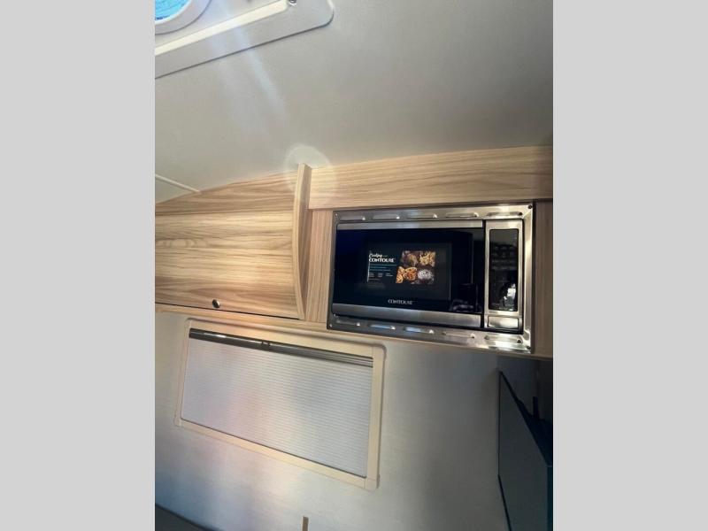 The TAB 360 CS teardrop trailer by nuCamp RV lets you take comfort with you wherever you roam! Since the kitchen has been moved outdoors with a hatch door, you'll enjoy a more spacious interior, while still experiencing an easy tow. Outside, there are aggressive off-road tires, a Nautilus water system with an external shower, plus an XL diamond plate storage tub. You'll love the look of the premium soft-close cabinetry, and the composite flooring will be easy to keep clean. There is also an Alde heating/hot water system, dual stargazer windows, and a power roof fan to name a few more conveniences. The Convenience Package includes a 190-watt solar panel and an external solar port, plus a 100Ah 12V lithium battery, an intelligent battery detection converter and a Bluetooth Smartshunt battery monitor. The optional Battle Born Lithium Battery Upgrade can be added that includes a 270Ah 12V lithium battery bank with internal heat and a 3,000-watt MultiPlus inverter/charger for even more power options!