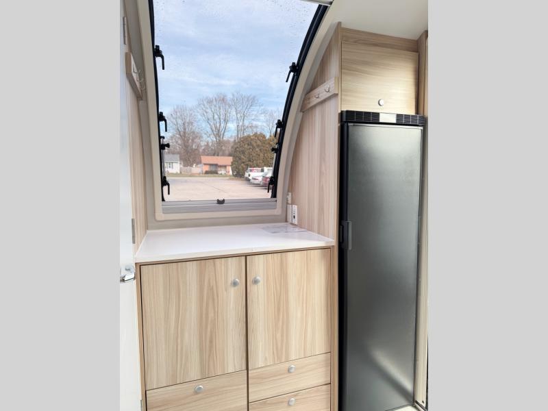 The TAB 360 CS teardrop trailer by nuCamp RV lets you take comfort with you wherever you roam! Since the kitchen has been moved outdoors with a hatch door, you'll enjoy a more spacious interior, while still experiencing an easy tow. Outside, there are aggressive off-road tires, a Nautilus water system with an external shower, plus a diamond plate storage tub. You'll love the look of the premium soft-close cabinetry, and the composite flooring will be easy to keep clean. There is also an Alde heating/hot water system, dual stargazer windows, and a power roof fan to name a few more conveniences. The Convenience Package includes a 190-watt solar panel and an external solar port, plus a 100Ah 12V lithium battery, an intelligent battery detection converter and a Bluetooth Smartshunt battery monitor. The optional Battle Born Lithium Battery Upgrade can be added that includes a 270Ah 12V lithium battery bank with internal heat and a 3,000-watt MultiPlus inverter/charger for even more power options!