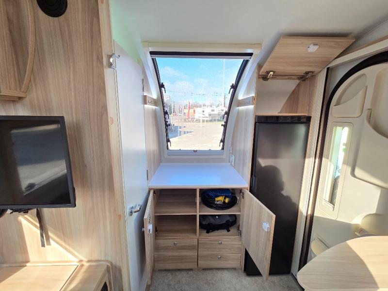 The TAB 360 CS teardrop trailer by nuCamp RV lets you take comfort with you wherever you roam! Since the kitchen has been moved outdoors with a hatch door, you'll enjoy a more spacious interior, while still experiencing an easy tow. Outside, there are aggressive off-road tires, a Nautilus water system with an external shower, plus a diamond plate storage tub. You'll love the look of the premium soft-close cabinetry, and the composite flooring will be easy to keep clean. There is also an Alde heating/hot water system, dual stargazer windows, and a power roof fan to name a few more conveniences. The Convenience Package includes a 190-watt solar panel and an external solar port, plus a 100Ah 12V lithium battery, an intelligent battery detection converter and a Bluetooth Smartshunt battery monitor. The optional Battle Born Lithium Battery Upgrade can be added that includes a 270Ah 12V lithium battery bank with internal heat and a 3,000-watt MultiPlus inverter/charger for even more power options!