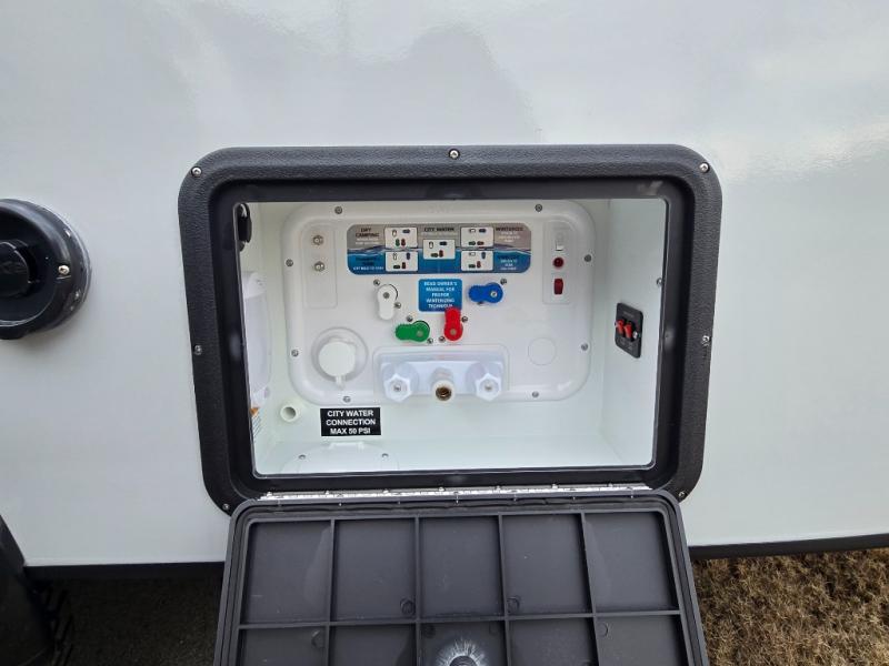 The TAB 360 CS teardrop trailer by nuCamp RV lets you take comfort with you wherever you roam! Since the kitchen has been moved outdoors with a hatch door, you'll enjoy a more spacious interior, while still experiencing an easy tow. Outside, there are aggressive off-road tires, a Nautilus water system with an external shower, plus a diamond plate storage tub. You'll love the look of the premium soft-close cabinetry, and the composite flooring will be easy to keep clean. There is also an Alde heating/hot water system, dual stargazer windows, and a power roof fan to name a few more conveniences. The Convenience Package includes a 190-watt solar panel and an external solar port, plus a 100Ah 12V lithium battery, an intelligent battery detection converter and a Bluetooth Smartshunt battery monitor. The optional Battle Born Lithium Battery Upgrade can be added that includes a 270Ah 12V lithium battery bank with internal heat and a 3,000-watt MultiPlus inverter/charger for even more power options!