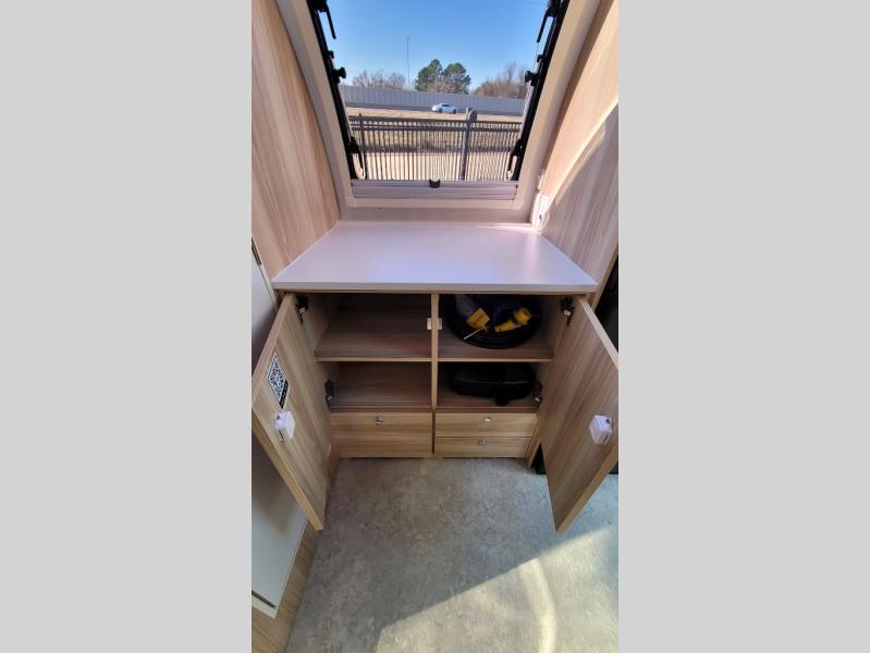 The TAB 360 CS teardrop trailer by nuCamp RV lets you take comfort with you wherever you roam! Since the kitchen has been moved outdoors with a hatch door, you'll enjoy a more spacious interior, while still experiencing an easy tow. Outside, there are aggressive off-road tires, a Nautilus water system with an external shower, plus a diamond plate storage tub. You'll love the look of the premium soft-close cabinetry, and the composite flooring will be easy to keep clean. There is also an Alde heating/hot water system, dual stargazer windows, and a power roof fan to name a few more conveniences. The Convenience Package includes a 190-watt solar panel and an external solar port, plus a 100Ah 12V lithium battery, an intelligent battery detection converter and a Bluetooth Smartshunt battery monitor. The optional Battle Born Lithium Battery Upgrade can be added that includes a 270Ah 12V lithium battery bank with internal heat and a 3,000-watt MultiPlus inverter/charger for even more power options!
