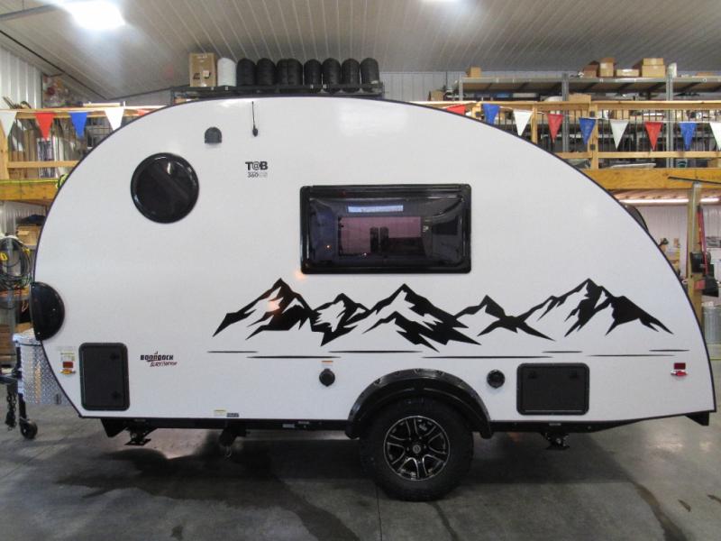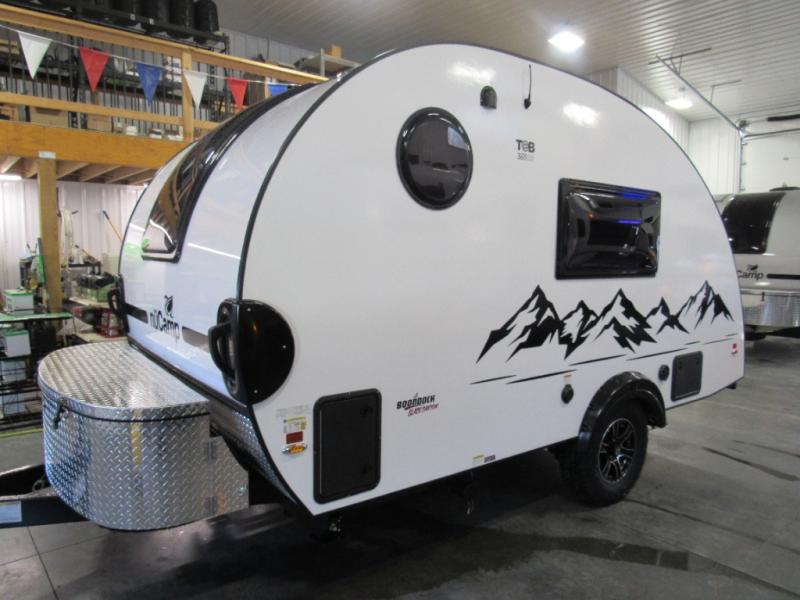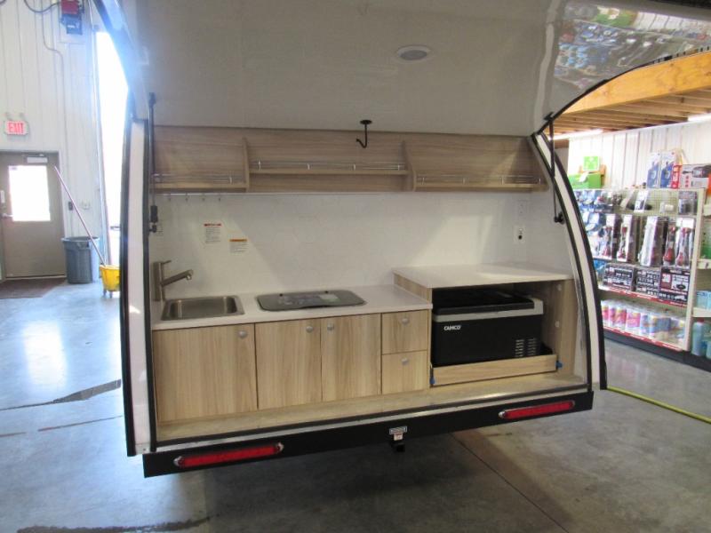 Additional Options: Black Canyon Package ( 2 190W Solar Panels, Holding Tank Heaters, Under-Glow Lights), Elevation Graphic, Microwave Add-on, Maxxfan UpgradenuCamp RV TAB 360 CS teardrop trailer Boondock highlights: