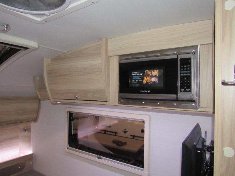 The TAB 360 CS teardrop trailer by nuCamp RV lets you take comfort with you wherever you roam! Since the kitchen has been moved outdoors with a hatch door, you'll enjoy a more spacious interior, while still experiencing an easy tow. Outside, there are aggressive off-road tires, a Nautilus water system with an external shower, plus a diamond plate storage tub. You'll love the look of the premium soft-close cabinetry, and the composite flooring will be easy to keep clean. There is also an Alde heating/hot water system, dual stargazer windows, and a power roof fan to name a few more conveniences. The Convenience Package includes a 190-watt solar panel and an external solar port, plus a 100Ah 12V lithium battery, an intelligent battery detection converter and a Bluetooth Smartshunt battery monitor. The optional Battle Born Lithium Battery Upgrade can be added that includes a 270Ah 12V lithium battery bank with internal heat and a 3,000-watt MultiPlus inverter/charger for even more power options!
