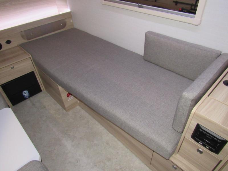 You're going to love camping in this teardrop clamshell trailer! Once you arrive at the campground, you can make lunch on the exterior rear hatch kitchen. There is a two-burner glass-top stove and a 30L 12-volt cooler here to quickly make lunch and grab a cold drink. The interior 5 cu. ft. 12-volt compressor refrigerator will provide more food storage, and an optional microwave can be added inside for the option to heat up quick meals indoors. You're sure to get a great night's rest on the twin-size bed, and the booth dinette can convert to a second twin-size bed so you can sleep two comfortably. The optional Black Canyon Upgrade can be added that includes a solar upgrade to dual 190W panels, holding tank heaters and underglow lights.