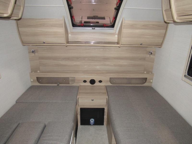 You're going to love camping in this teardrop clamshell trailer! Once you arrive at the campground, you can make lunch on the exterior rear hatch kitchen. There is a two-burner glass-top stove and a 30L 12-volt cooler here to quickly make lunch and grab a cold drink. The interior 5 cu. ft. 12-volt compressor refrigerator will provide more food storage, and an optional microwave can be added inside for the option to heat up quick meals indoors. You're sure to get a great night's rest on the twin-size bed, and the booth dinette can convert to a second twin-size bed so you can sleep two comfortably. The optional Black Canyon Upgrade can be added that includes a solar upgrade to dual 190W panels, holding tank heaters and underglow lights.