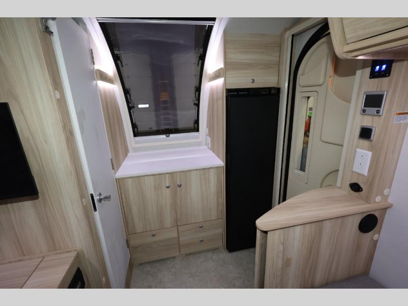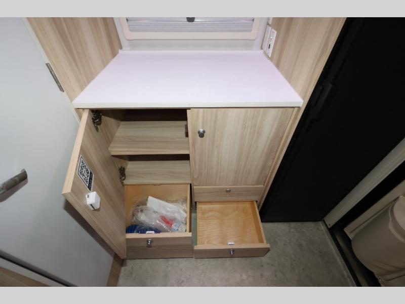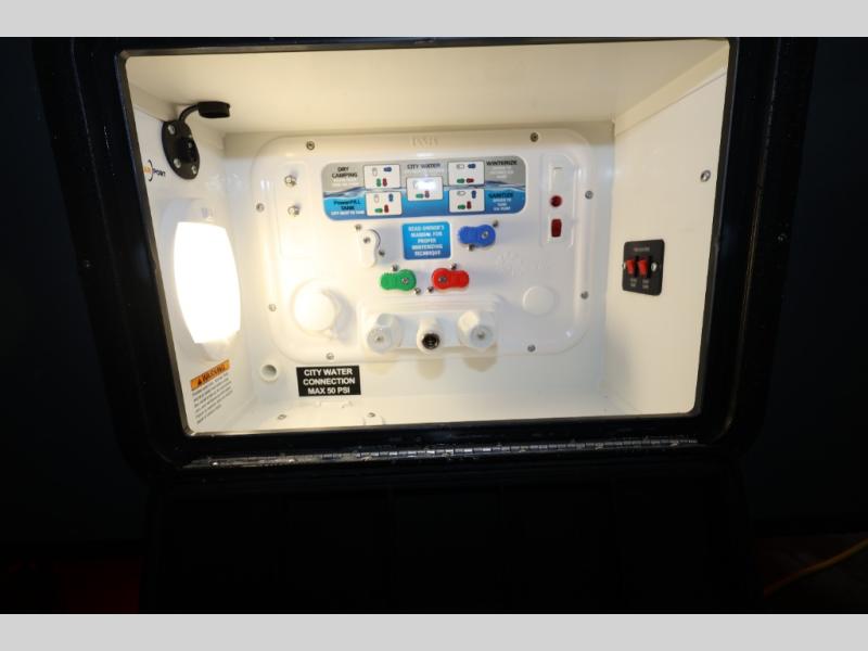 The TAB 360 CS teardrop trailer by nuCamp RV lets you take comfort with you wherever you roam! Since the kitchen has been moved outdoors with a hatch door, you'll enjoy a more spacious interior, while still experiencing an easy tow. Outside, there are aggressive off-road tires, a Nautilus water system with an external shower, plus a diamond plate storage tub. You'll love the look of the premium soft-close cabinetry, and the composite flooring will be easy to keep clean. There is also an Alde heating/hot water system, dual stargazer windows, and a power roof fan to name a few more conveniences. The Convenience Package includes a 190-watt solar panel and an external solar port, plus a 100Ah 12V lithium battery, an intelligent battery detection converter and a Bluetooth Smartshunt battery monitor. The optional Battle Born Lithium Battery Upgrade can be added that includes a 270Ah 12V lithium battery bank with internal heat and a 3,000-watt MultiPlus inverter/charger for even more power options!
