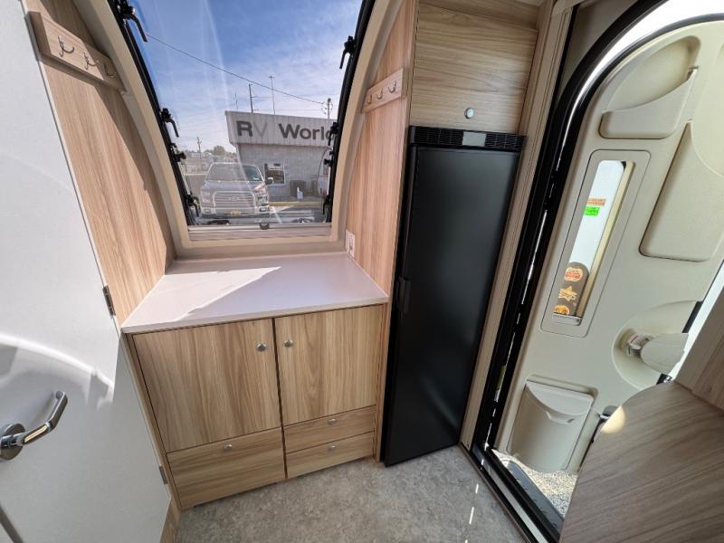 The TAB 360 CS teardrop trailer by nuCamp RV lets you take comfort with you wherever you roam! Since the kitchen has been moved outdoors with a hatch door, you'll enjoy a more spacious interior, while still experiencing an easy tow. Outside, there are aggressive off-road tires, a Nautilus water system with an external shower, plus a diamond plate storage tub. You'll love the look of the premium soft-close cabinetry, and the composite flooring will be easy to keep clean. There is also an Alde heating/hot water system, dual stargazer windows, and a power roof fan to name a few more conveniences. The Convenience Package includes a 190-watt solar panel and an external solar port, plus a 100Ah 12V lithium battery, an intelligent battery detection converter and a Bluetooth Smartshunt battery monitor. The optional Battle Born Lithium Battery Upgrade can be added that includes a 270Ah 12V lithium battery bank with internal heat and a 3,000-watt MultiPlus inverter/charger for even more power options!