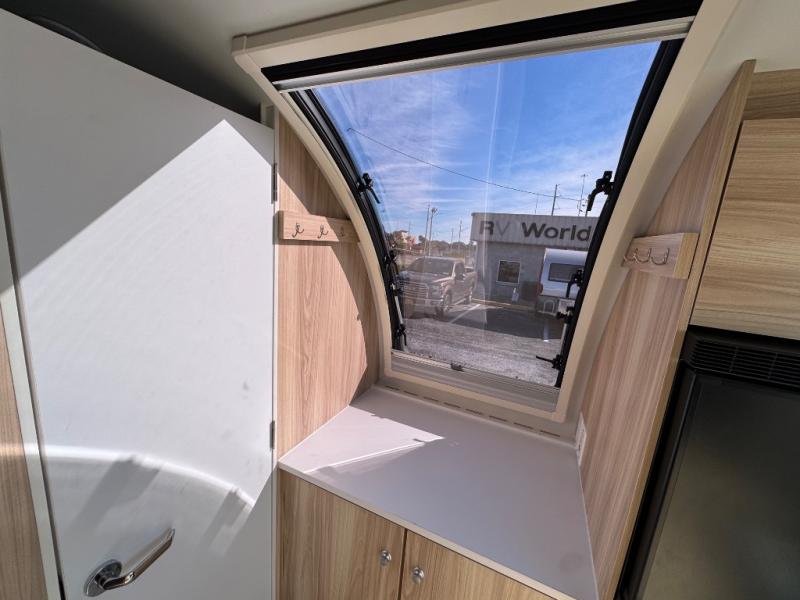 The TAB 360 CS teardrop trailer by nuCamp RV lets you take comfort with you wherever you roam! Since the kitchen has been moved outdoors with a hatch door, you'll enjoy a more spacious interior, while still experiencing an easy tow. Outside, there are aggressive off-road tires, a Nautilus water system with an external shower, plus a diamond plate storage tub. You'll love the look of the premium soft-close cabinetry, and the composite flooring will be easy to keep clean. There is also an Alde heating/hot water system, dual stargazer windows, and a power roof fan to name a few more conveniences. The Convenience Package includes a 190-watt solar panel and an external solar port, plus a 100Ah 12V lithium battery, an intelligent battery detection converter and a Bluetooth Smartshunt battery monitor. The optional Battle Born Lithium Battery Upgrade can be added that includes a 270Ah 12V lithium battery bank with internal heat and a 3,000-watt MultiPlus inverter/charger for even more power options!