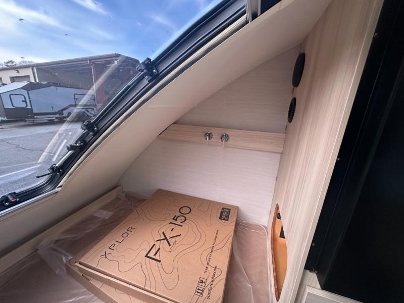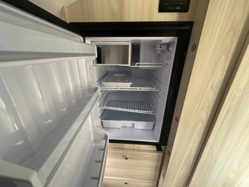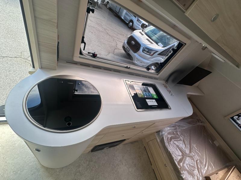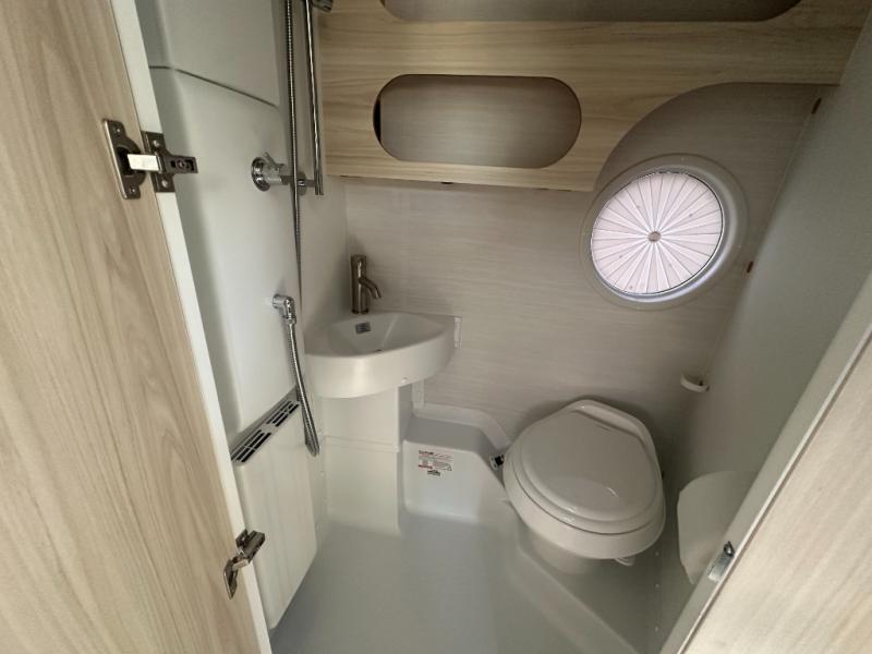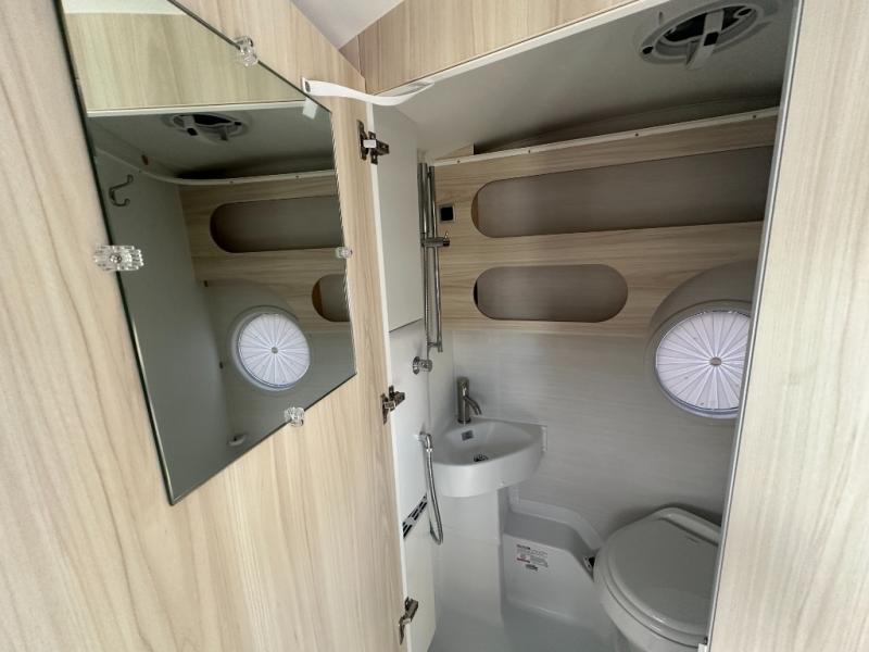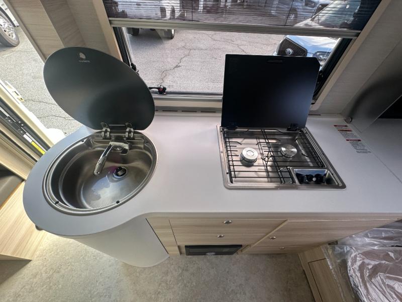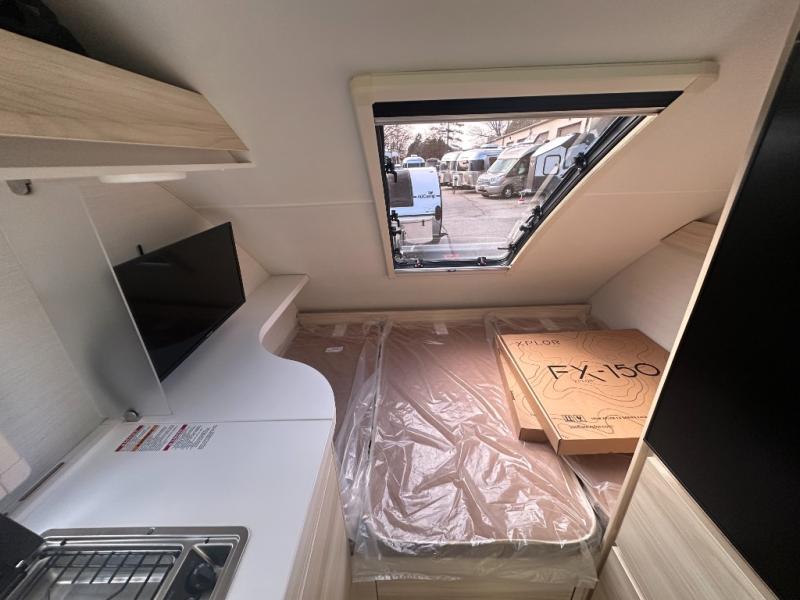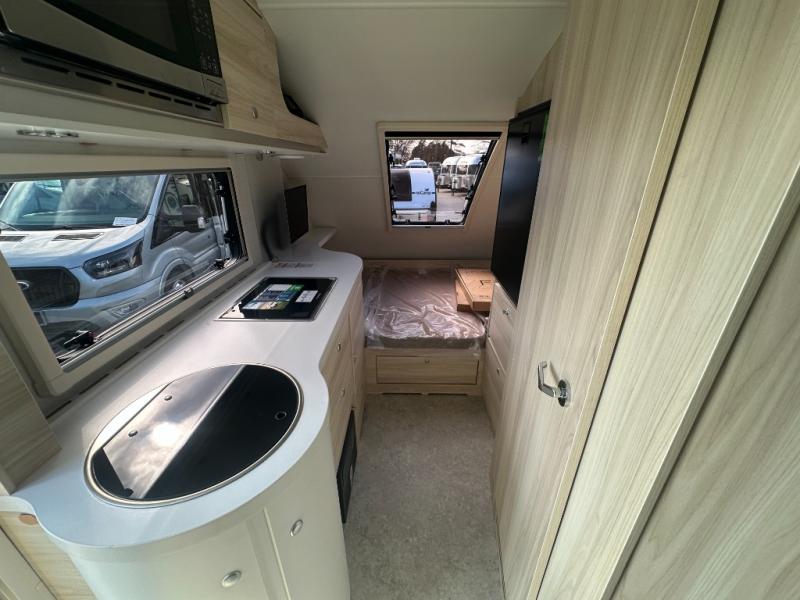This teardrop trailer offers sleeping space for three with two sleeping areas; one up front and one in the rear. The dinette allows you to eat and relax during the day, and at night this space becomes sleeping space for one. And if you're needing even more sleeping space, you can choose the optional bunk floorplan! The queen-size sleeping area is located on the opposite side with the wet bath in between for convenience for all. The galley kitchen will give the cook a place to make warm meals and store leftovers in the 4.6 cu. ft. 12V compressor refrigerator. Everyone can watch the 24" TV through the Bluetooth media center before bedtime, or in the morning as you all plan your next activity. And the Alde central heating/hot water system, as well as central air conditioning will keep you comfortable where ever you set up. The Lithium battery upgrade includes 400 Ah 12V lithium battery bank with internal heat and a 3,000 watt inverter/charger. The Black Canyon optional package will have a dry tongue weight of 380 lbs., and a total gross dry weight of 2,946 lbs.