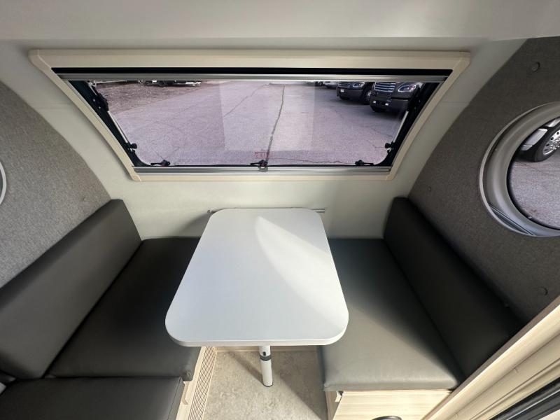 The TAB 400 by nuCamp RV is mighty in essentials and spacious for a teardrop trailer! There is a Froli sleep system, a spacious wet bath, a galley kitchen and plenty of storage plus a dinette. Inside you will enjoy the Bluetooth media center, premium soft-close cabinetry, and monster picture window. Some conveniences include a 310 watt solar panel allowing you to choose a spot off-grid to camp, and you can also choose the Boondock and Black Canyon optional packages available with an additional 310 watt solar panel, holding tank heaters, and under-glow lights. Select a TAB 400 today to enjoy the unique shape of the teardrop, and the spacious interior for extended trips!
