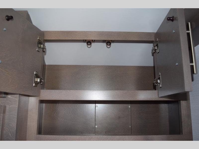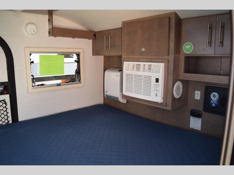 This teardrop trailer offers sleeping space for three with two sleeping areas; one up front and one in the rear. The dinette allows you to eat and relax during the day, and at night this space becomes sleeping space for one. And if you're needing even more sleeping space, you can choose the optional bunk floorplan! The queen-size sleeping area is located on the opposite side with the wet bath in between for convenience for all. The galley kitchen will give the cook a place to make warm meals and store leftovers in the 4.6 cu. ft. 12V compressor refrigerator. Everyone can watch the 24" TV through the Bluetooth media center before bedtime, or in the morning as you all plan your next activity. And the Alde central heating/hot water system, as well as central air conditioning will keep you comfortable wherever you set up. An optional Black Canyon Upgrade is available with an additional 310-watt solar panel, holding tank heaters, underglow lights, and an XL diamond plate storage tub.