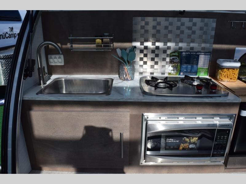 The TAB 400 by nuCamp RV is mighty in essentials and spacious for a teardrop trailer! There is a Froli sleep system, a spacious wet bath, a galley kitchen and plenty of storage plus a dinette. Inside you will enjoy the Bluetooth media center, premium soft-close cabinetry, and an expansive picture window. You'll also find composite flooring, a rail table, and a power roof fan to name a few more comforts. The Convenience Package comes with a 310-watt solar panel, a 1,200-watt power inverter, a 100AH 12-volt lithium battery, and more features to help you camp off grid! Along with the optional Black Canyon Upgrade, you can also choose the optional Lithium Battery Upgrade, an optional microwave, and an optional Maxxair fan to further customize your camper!
