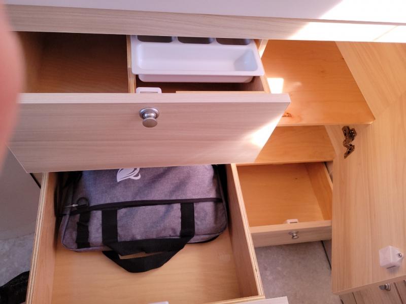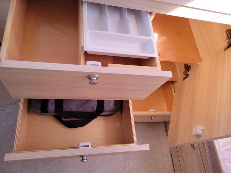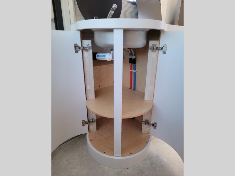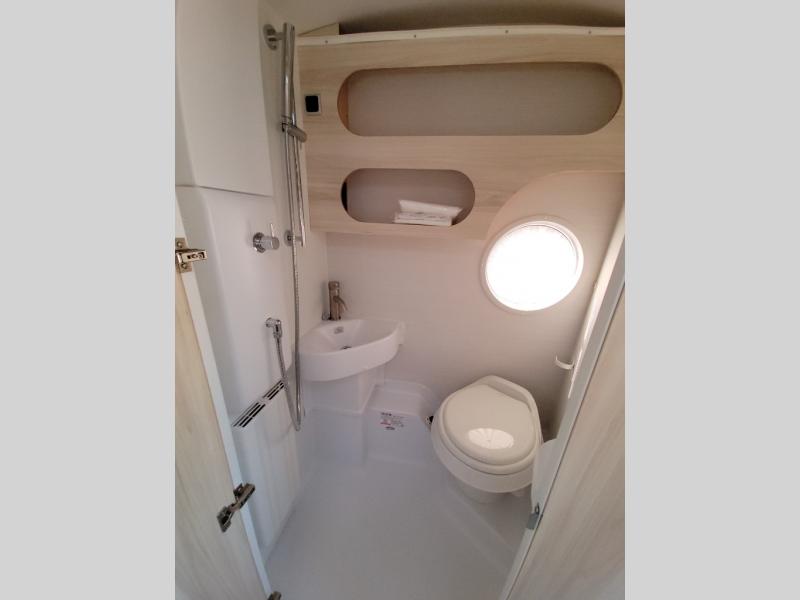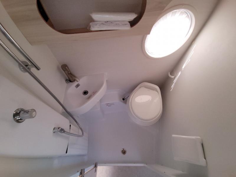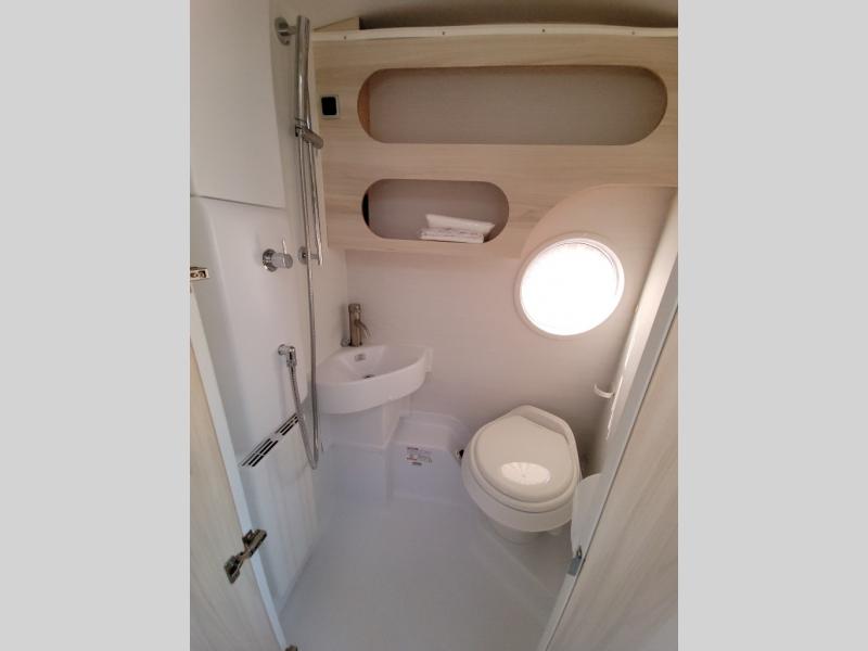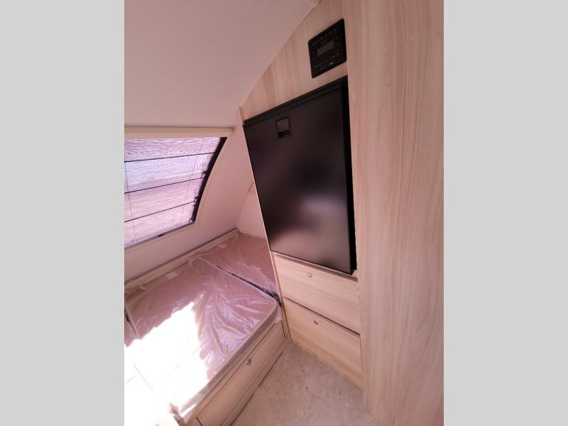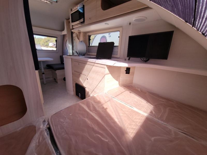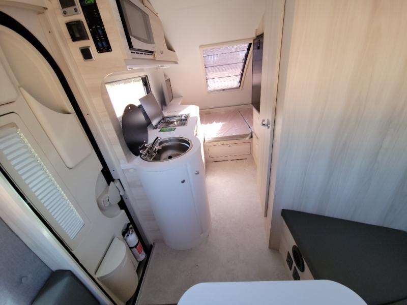 This teardrop trailer offers sleeping space for three with two sleeping areas; one up front and one in the rear. The dinette allows you to eat and relax during the day, and at night this space becomes sleeping space for one. And if you're needing even more sleeping space, you can choose the optional bunk floorplan! The queen-size sleeping area is located on the opposite side with the wet bath in between for convenience for all. The galley kitchen will give the cook a place to make warm meals and store leftovers in the 4.6 cu. ft. 12V compressor refrigerator. Everyone can watch the 24" TV through the Bluetooth media center before bedtime, or in the morning as you all plan your next activity. And the Alde central heating/hot water system, as well as central air conditioning will keep you comfortable where ever you set up. The Black Canyon optional package will have a dry tongue weight of 380 lbs., and a total gross dry weight of 2,946 lbs. The optional Classic package will have a tongue weight will be 355 lbs. and the total gross weight will be 2,915 lbs.