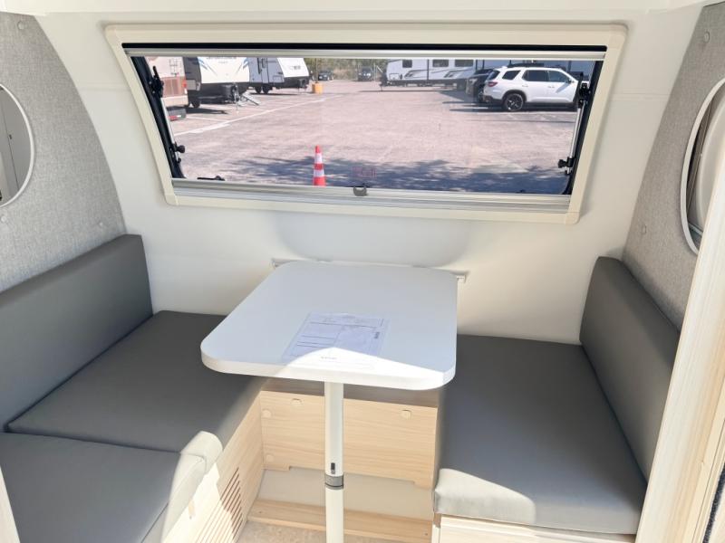 The TAB 400 by nuCamp RV is mighty in essentials and spacious for a teardrop trailer! There is a Froli sleep system, a spacious wet bath, a galley kitchen and plenty of storage plus a dinette. Inside you will enjoy the Bluetooth media center, premium soft-close cabinetry, and an expansive picture window. You'll also find composite flooring, a rail table, and a power roof fan to name a few more comforts. The Convenience Package comes with a 310-watt solar panel, a 1,200-watt power inverter, a 100AH 12-volt lithium battery, and more features to help you camp off grid! Along with the optional Black Canyon Upgrade, you can also choose the optional Lithium Battery Upgrade, an optional microwave, and an optional Maxxair fan to further customize your camper!