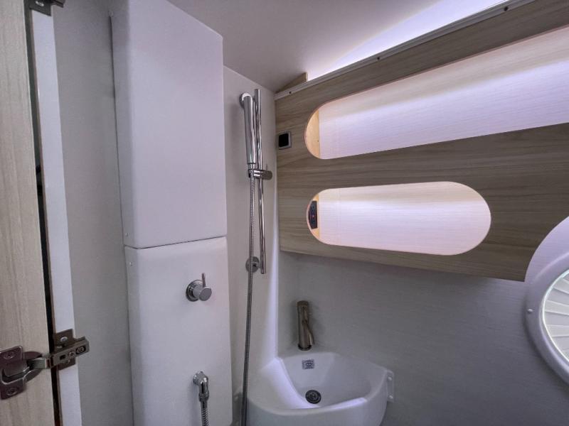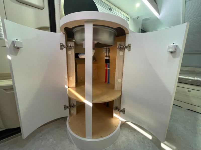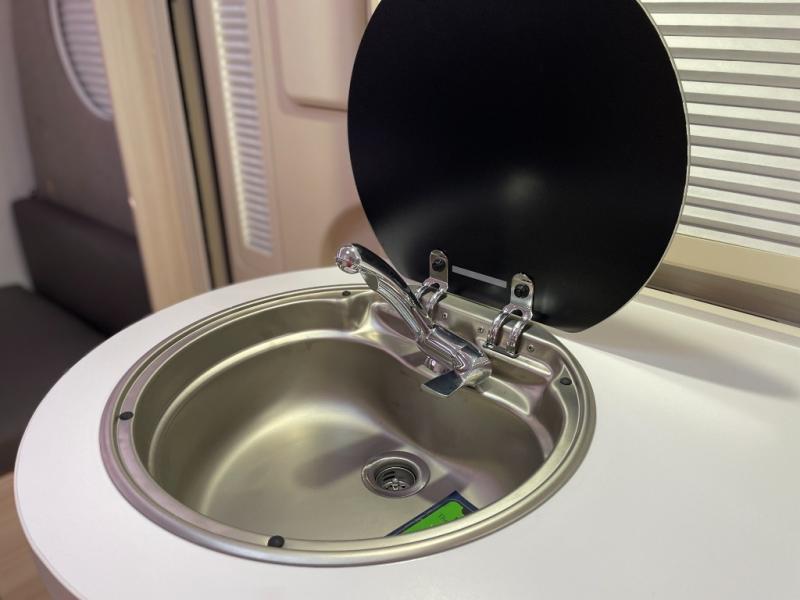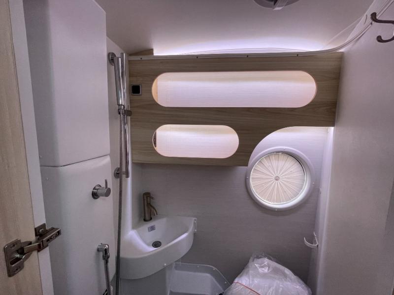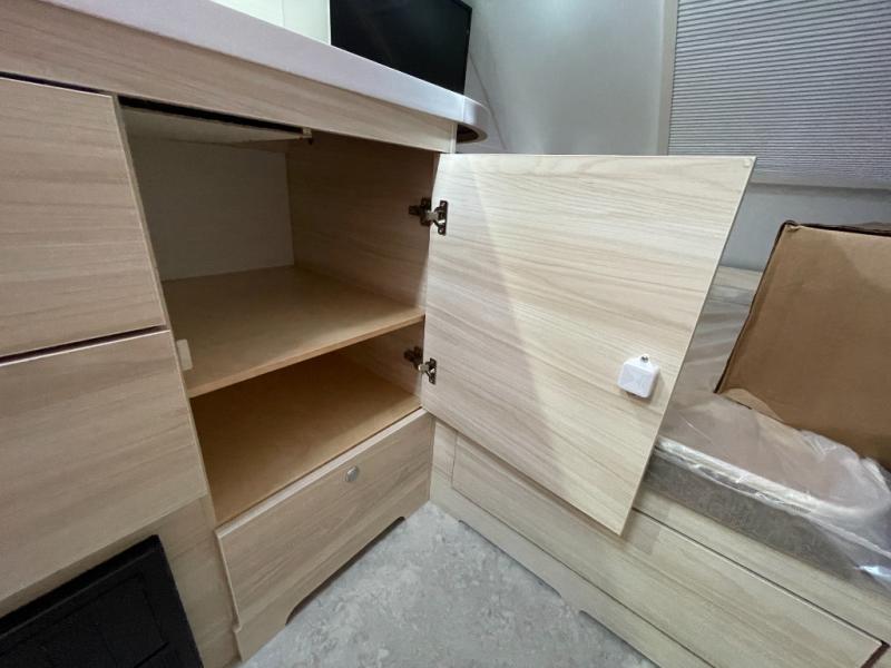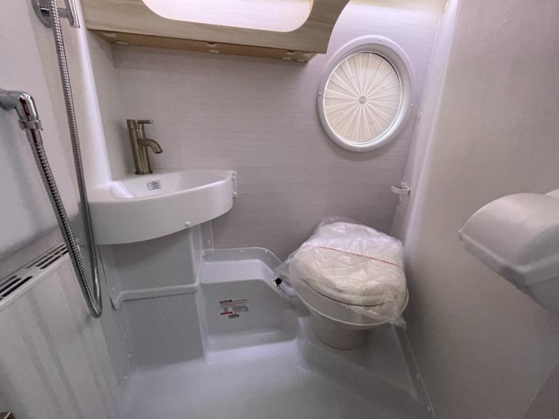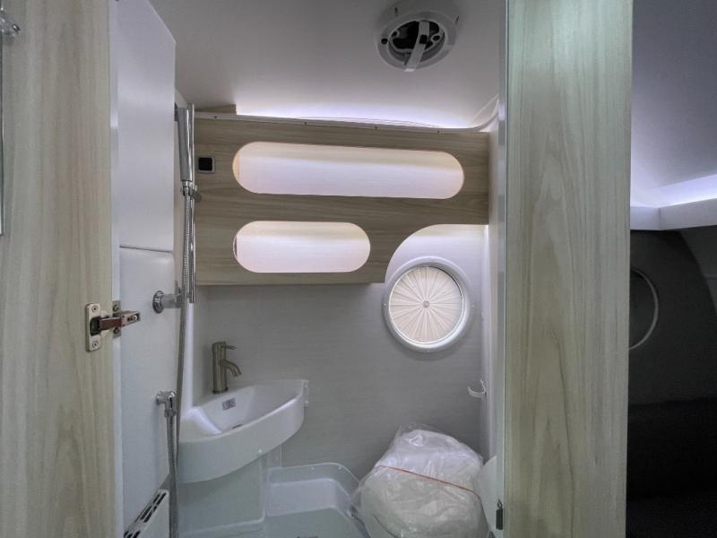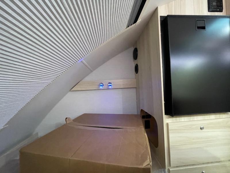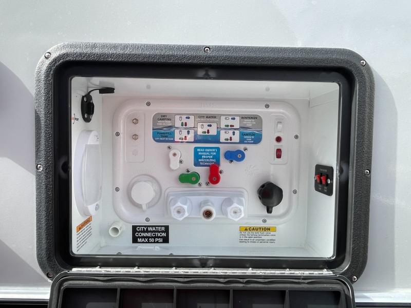 This teardrop trailer offers sleeping space for three with two sleeping areas; one up front and one in the rear. The dinette allows you to eat and relax during the day, and at night this space becomes sleeping space for one. And if you're needing even more sleeping space, you can choose the optional bunk floorplan! The queen-size sleeping area is located on the opposite side with the wet bath in between for convenience for all. The galley kitchen will give the cook a place to make warm meals and store leftovers in the 4.6 cu. ft. 12V compressor refrigerator. Everyone can watch the 24" TV through the Bluetooth media center before bedtime, or in the morning as you all plan your next activity. And the Alde central heating/hot water system, as well as central air conditioning will keep you comfortable wherever you set up. An optional Black Canyon Upgrade is available with an additional 310-watt solar panel, holding tank heaters, underglow lights, and an XL diamond plate storage tub.