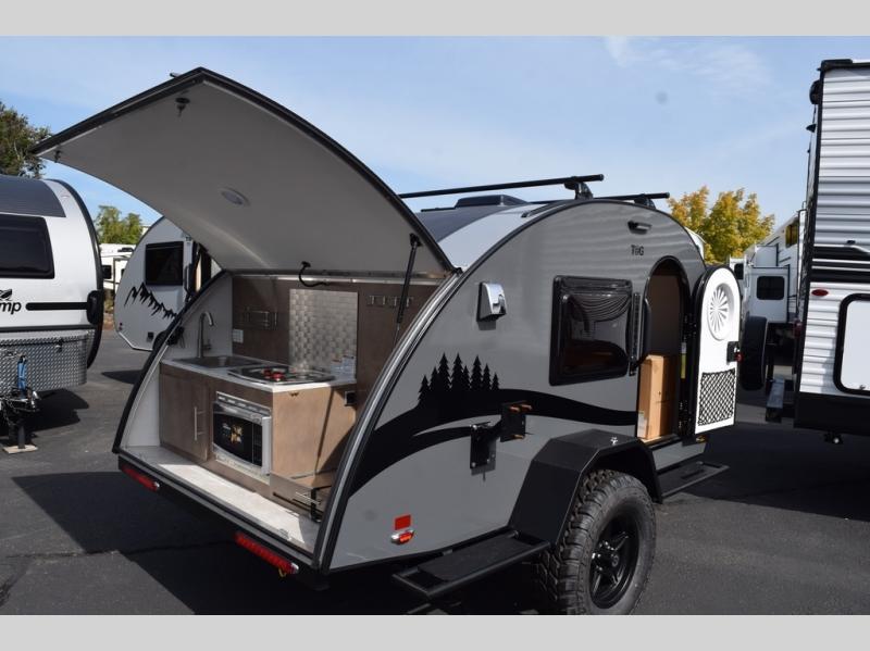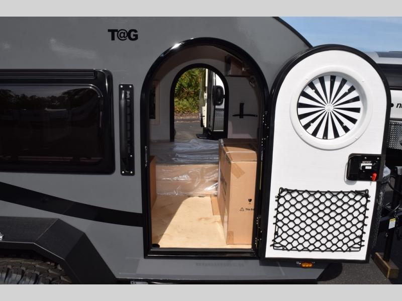 When you are looking to upgrade from a tent, this TAG XL Boondock might be your solution to outdoor fun with inside sleeping arrangements for two and an outdoor kitchen! You can enter from either side to enjoy your own queen-size bed as you look at the stars each night through the large front stargazer window. The interior also offers an air conditioner, under-bed storage, and cargo pouches for your belongings. The optional Black Canyon upgrade is available with this model that comes with an additional 120W solar panel, a water heater, holding tank heaters, under-glow lights, and a tri-fold multifunction mattress. Please note: the model specs on this unit represent the TAG XL Boondock model. If the optional Black Canyon upgrade is chosen, the tongue weight will be 194 lbs. and the gross dry weight will be 1,655 lbs. See dealer for more details!