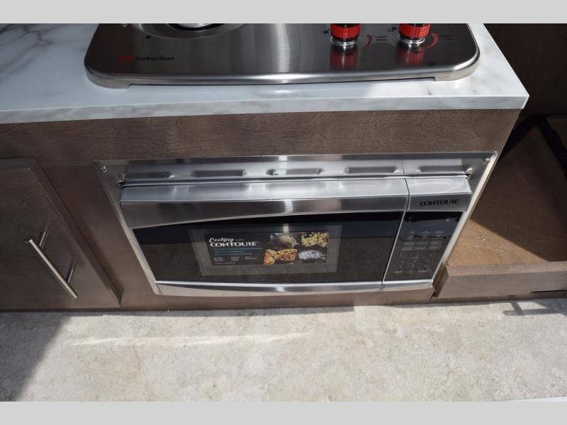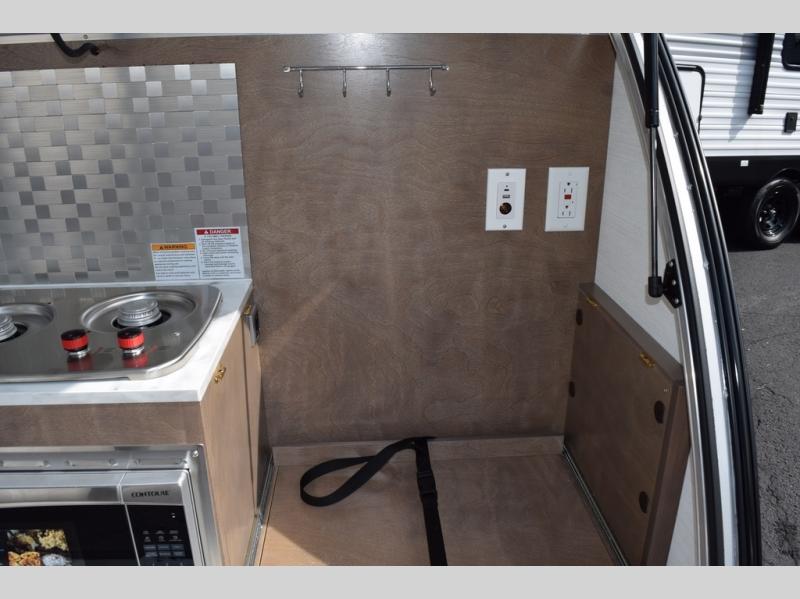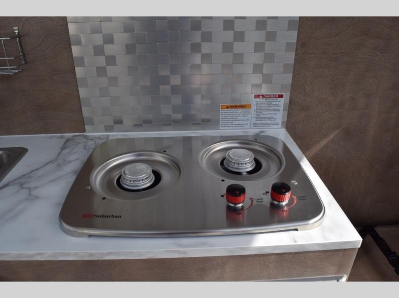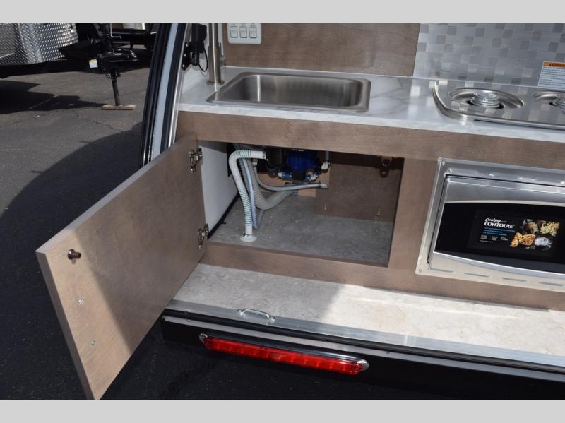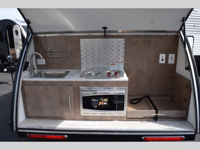 With any nuCamp RV TAG teardrop trailer, you can bring some of the comforts of home with you as you easily tow this lightweight trailer to the campgrounds. The outdoor kitchen includes a stainless steel sink and two-burner stove so you won't have to cook over a campfire each day. Inside, you'll find a composite floor, deluxe Amish cabinetry, sleeping accommodations, and a power roof fan to keep you comfortable. You will also appreciate the Convenience Package that comes with a 180-watt solar panel, a portable Bluetooth speaker, a 100 Ah 12-volt Lithium battery, and more!