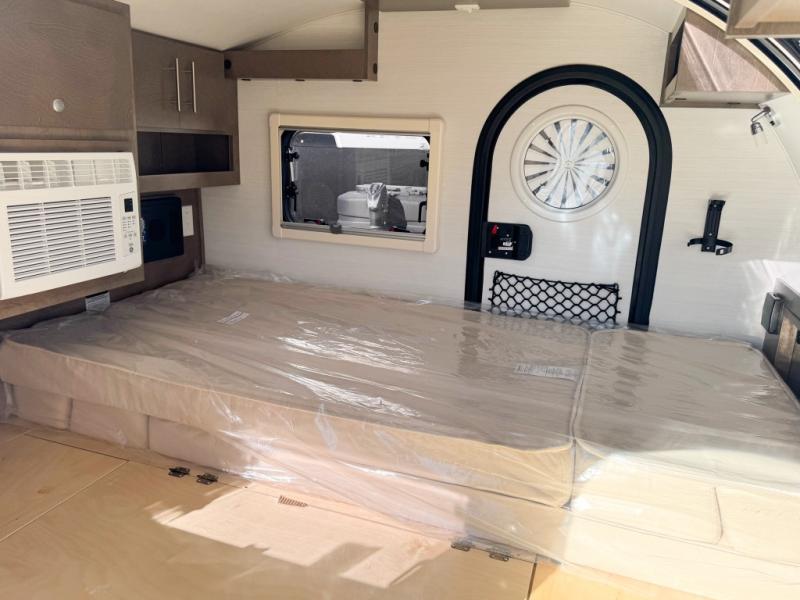 When you are looking to upgrade from a tent, this TAG XL Boondock might be your solution to outdoor fun with inside sleeping arrangements for two and an outdoor kitchen! You can enter from either side to enjoy your own queen-size bed as you look at the stars each night through the large front stargazer window. The interior also offers an air conditioner, under-bed storage, and cargo pouches for your belongings. The optional Black Canyon upgrade is available with this model that comes with an additional 120W solar panel, a water heater, holding tank heaters, under-glow lights, and a tri-fold multifunction mattress. Please note: the model specs on this unit represent the TAG XL Boondock model. If the optional Black Canyon upgrade is chosen, the tongue weight will be 194 lbs. and the gross dry weight will be 1,655 lbs. See dealer for more details!
