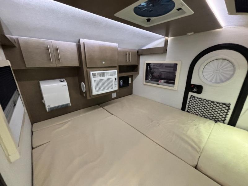 When you are looking to upgrade from a tent, this TAG XL Boondock might be your solution to outdoor fun with inside sleeping arrangements for two and an outdoor kitchen! You can enter from either side to enjoy your own queen-size bed as you look at the stars each night through the large front stargazer window. The interior also offers an air conditioner, under-bed storage, and cargo pouches for your belongings. The optional Black Canyon upgrade is available with this model that comes with an additional 120W solar panel, a water heater, holding tank heaters, under-glow lights, and a tri-fold multifunction mattress. Please note: the model specs on this unit represent the TAG XL Boondock model. If the optional Black Canyon upgrade is chosen, the tongue weight will be 194 lbs. and the gross dry weight will be 1,655 lbs. See dealer for more details!