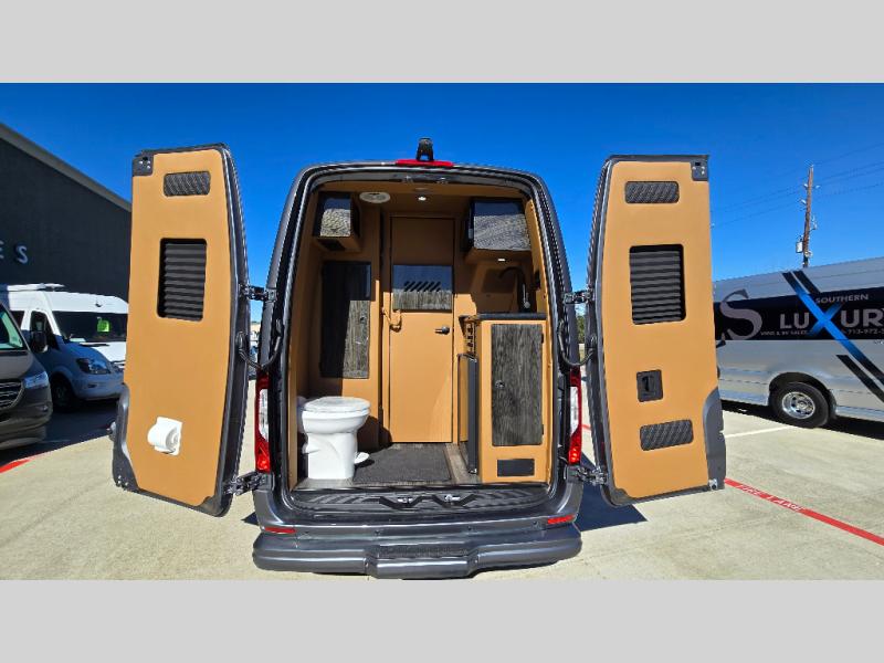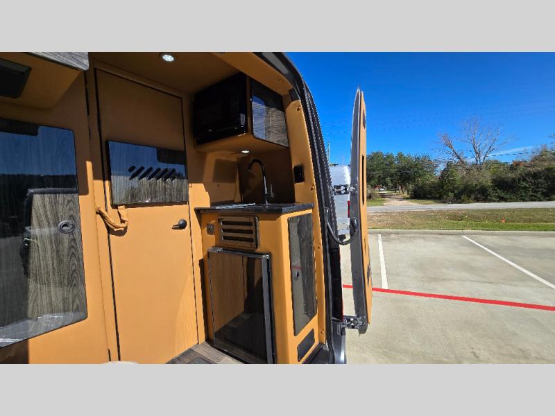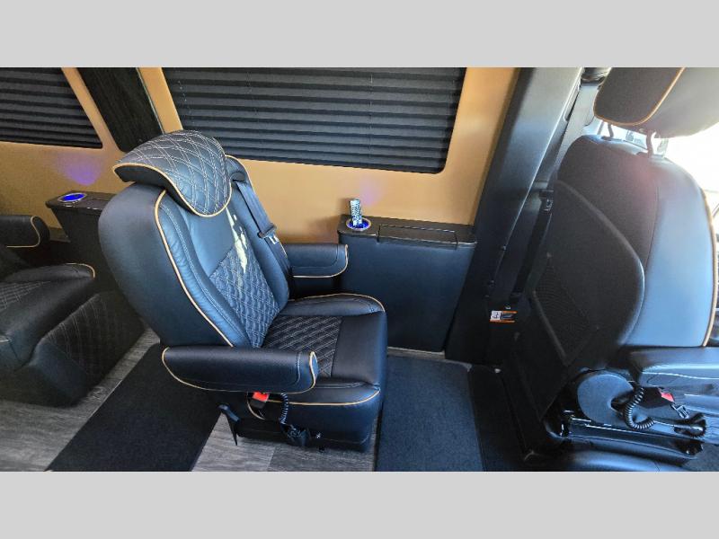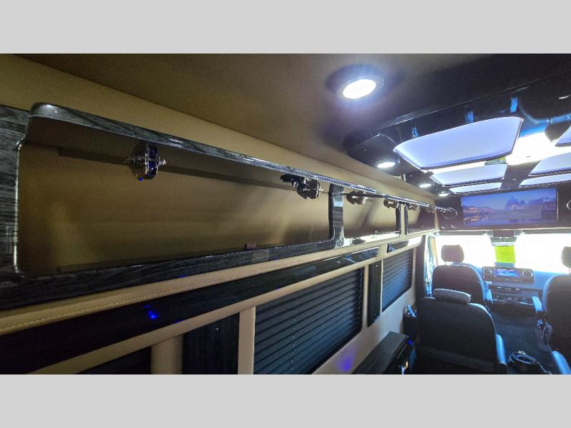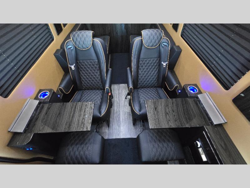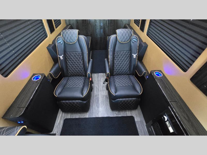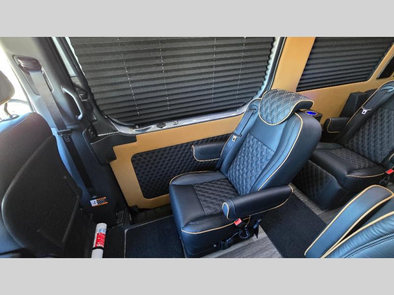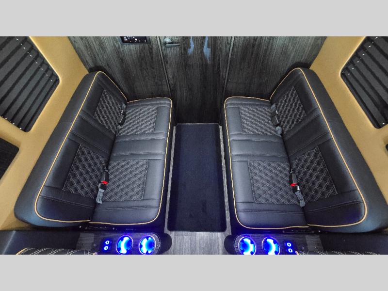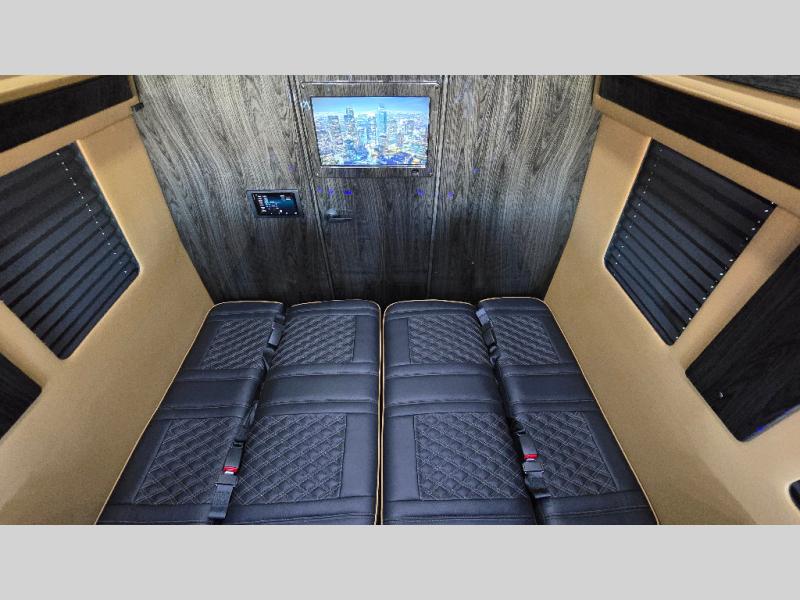 With any V-Cruise Class B diesel motorhome by OGV Luxury Coach, you will find high-quality and style at every turn. These Class B conversion vans feature color match bumpers and side moldings, a 7,500 lb. towing capacity, and an exterior utility bay with 30 Amp shore power, dual 110V outlets, an outside shower, plus tank fill and rinse for added convenience. The driver will love having a rear view camera for easy maneuvering, along with active brake assist, crosswind assist, and headlight assist. You'll love the interior of the V-Cruise with its handmade woodwork and satin finish, carpeted floor mats throughout the cabin, custom seating with double needle stitching, and more luxurious features. There is also an integrated touchscreen control system, plus a 100 Ah lithium auxiliary house battery and 2,000 watt inverter to keep you powered up.
