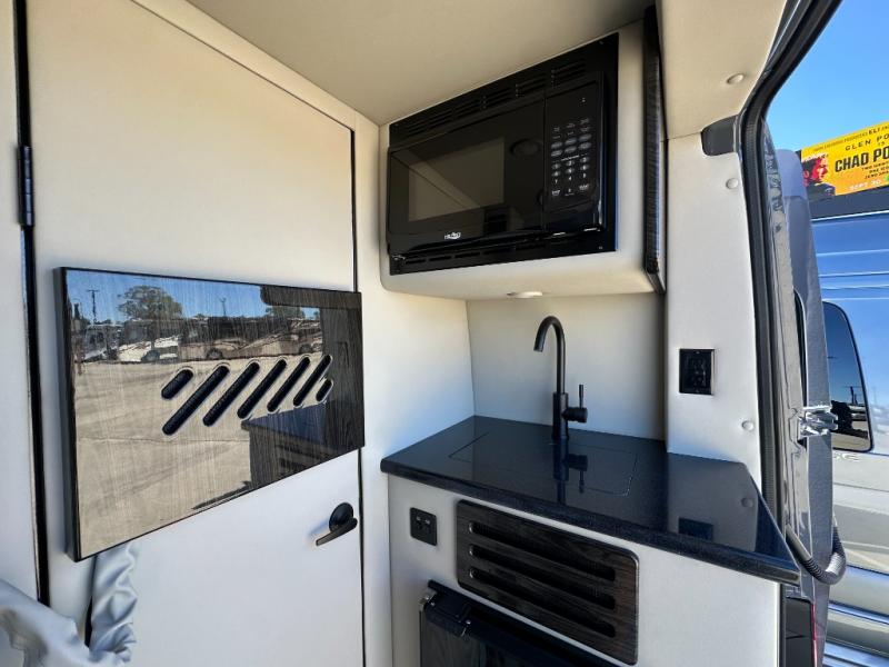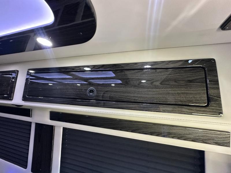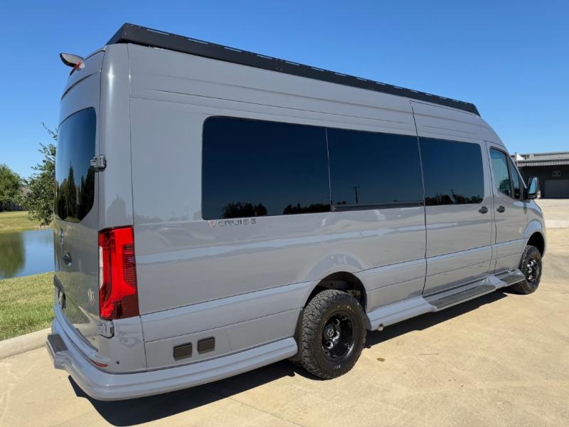 With any V-Cruise Class B diesel motorhome by OGV Luxury Coach, you will find high-quality and style at every turn. These Class B conversion vans feature color match bumpers and side moldings, a 5,000 lb. towing capacity, and an exterior utility bay with 30 Amp shore power, dual 110V outlets, an outside shower, plus tank fill and rinse for added convenience. The driver will love having a rear view camera for easy maneuvering, along with active brake assist, crosswind assist, and headlight assist. You'll love the interior of the V-Cruise with its handmade woodwork and satin finish, carpeted floor mats throughout the cabin, custom seating with double needle stitching, and more luxurious features. There is also an integrated touchscreen control system, plus a 100 Ah lithium auxiliary house battery and 2,000 watt inverter to keep you powered up.
