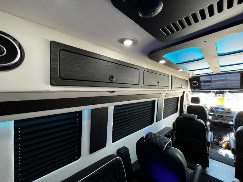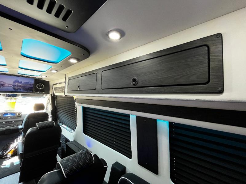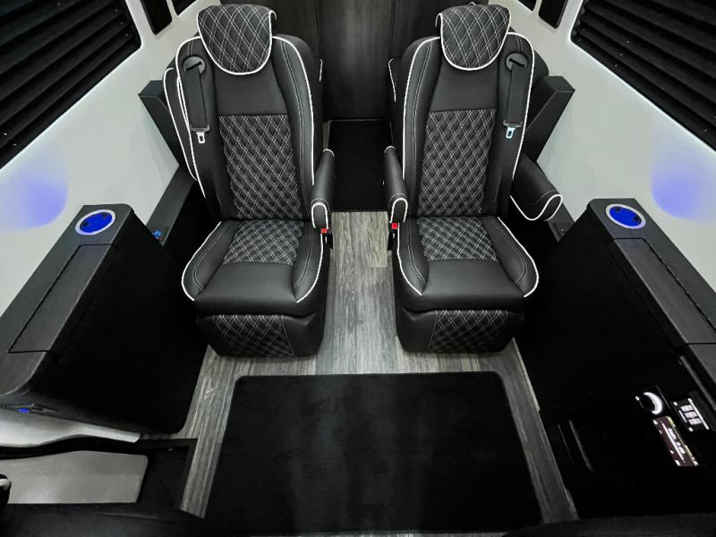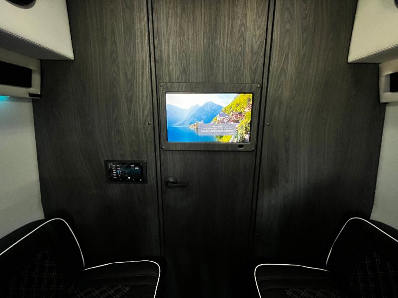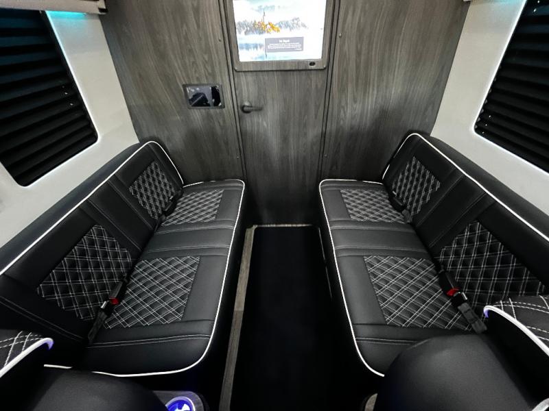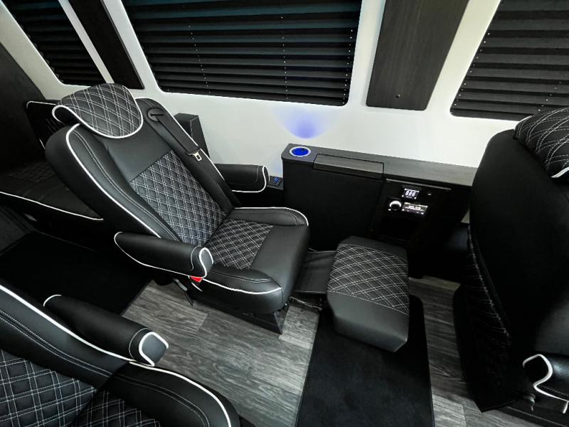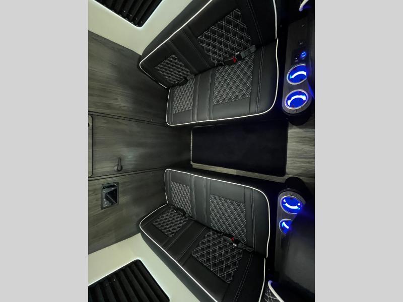 With any V-Cruise Class B diesel motorhome by OGV Luxury Coach, you will find high-quality and style at every turn. These Class B conversion vans feature color match bumpers and side moldings, a 7,500 lb. towing capacity, and an exterior utility bay with 30 Amp shore power, dual 110V outlets, an outside shower, plus tank fill and rinse for added convenience. The driver will love having a rear view camera for easy maneuvering, along with active brake assist, crosswind assist, and headlight assist. You'll love the interior of the V-Cruise with its handmade woodwork and satin finish, carpeted floor mats throughout the cabin, custom seating with double needle stitching, and more luxurious features. There is also an integrated touchscreen control system, plus a 100 Ah lithium auxiliary house battery and 2,000 watt inverter to keep you powered up.