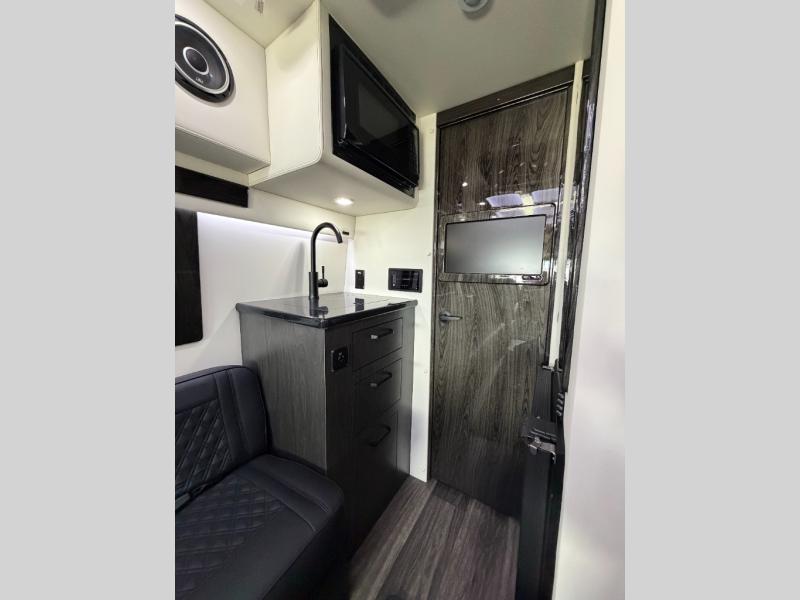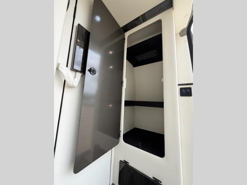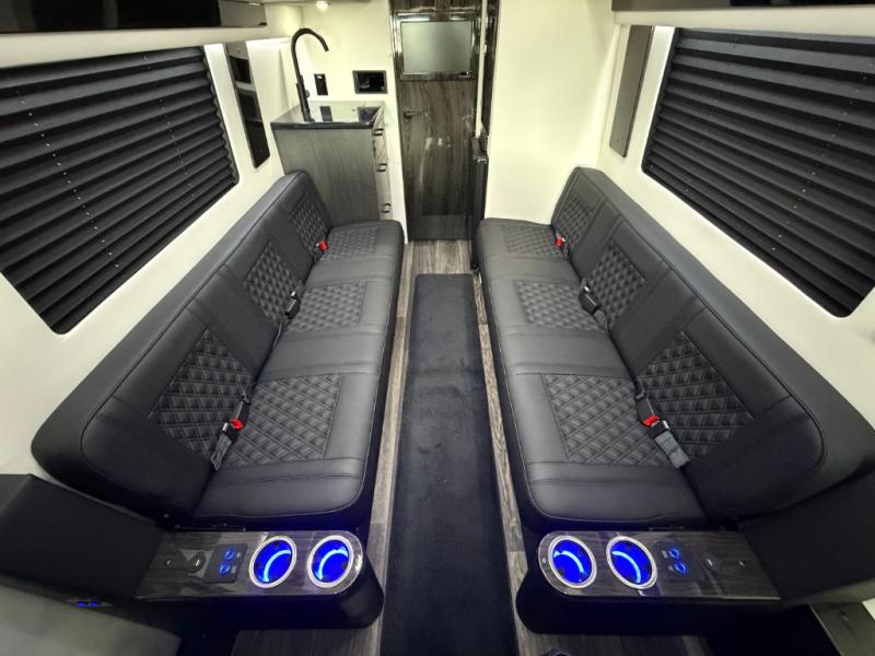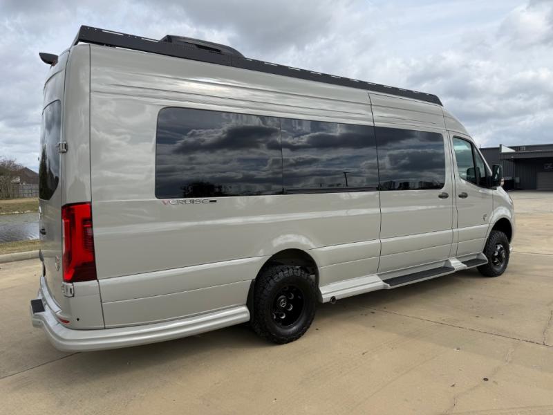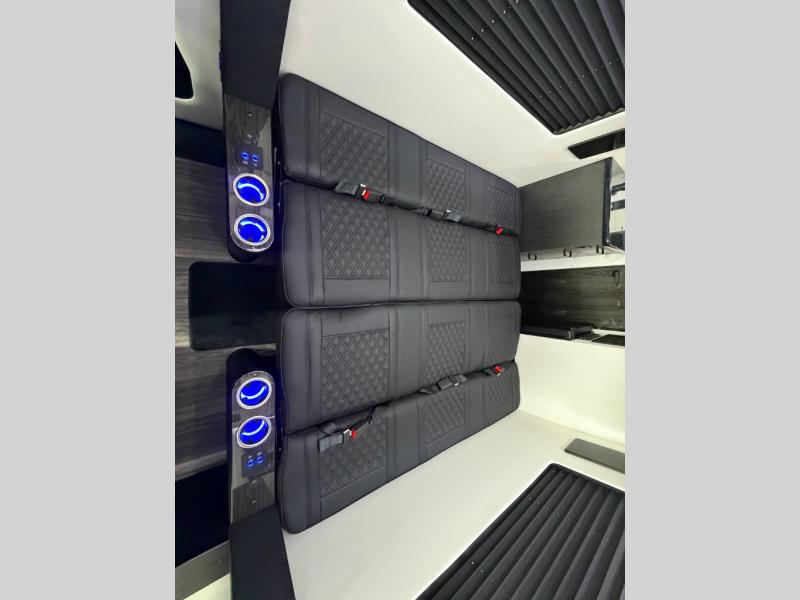 With any VCRUISE Class B diesel motorhome by OGV Luxury Coach, you will find high-quality and style at every turn. These Class B conversion vans feature color match bumpers and side moldings, a 5,000 lb. towing capacity, and an exterior utility bay with 30 Amp shore power, dual 110V outlets, an outside shower, plus tank fill and rinse for added convenience. The driver will love having a rear view camera for easy maneuvering, along with active brake assist, crosswind assist, and headlight assist. You'll love the interior of the VCRUISE with its carpeted floor mats throughout the cabin, custom seating with double needle stitching, and more luxurious features. There is also an integrated touchscreen control system, plus a 270 Ah lithium auxiliary house battery and 2,000 watt inverter to keep you powered up.