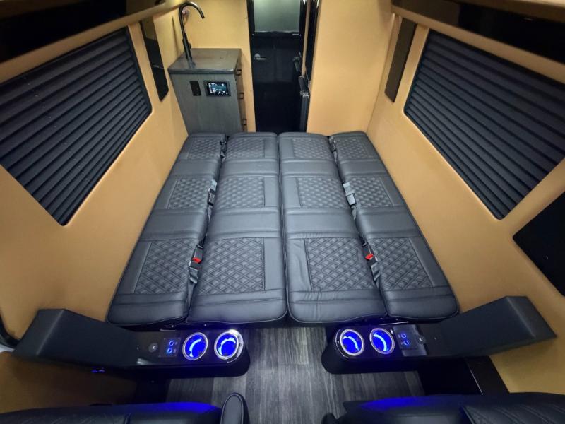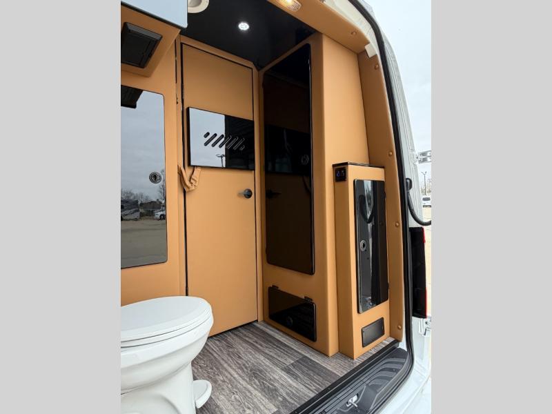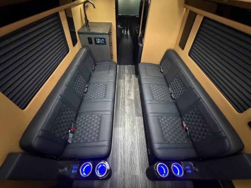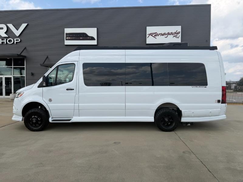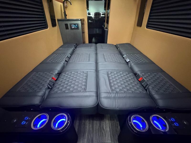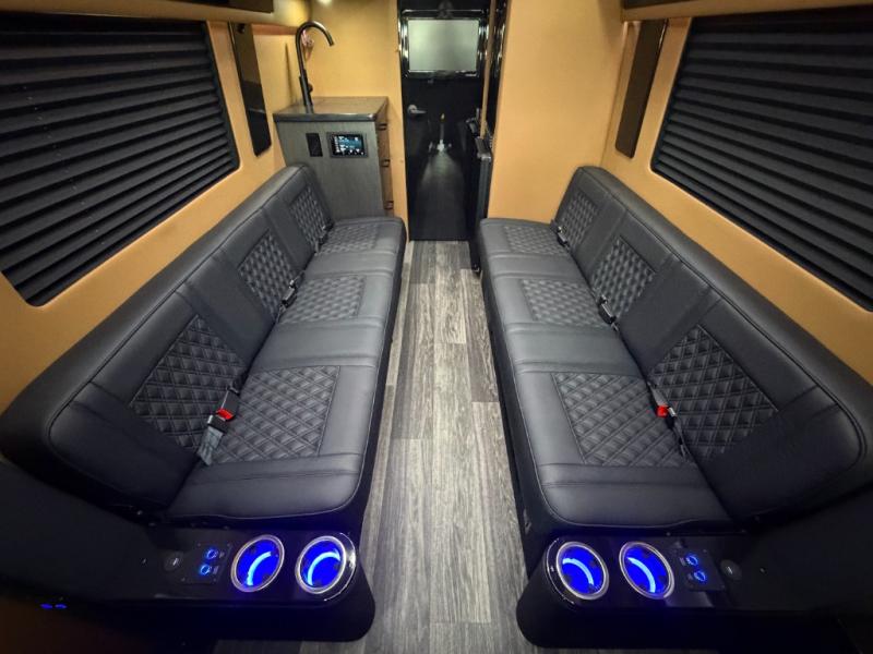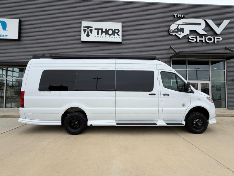 With any VCRUISE Class B diesel motorhome by OGV Luxury Coach, you will find high-quality and style at every turn. These Class B conversion vans feature color match bumpers and side moldings, a 5,000 lb. towing capacity, and an exterior utility bay with 30 Amp shore power, dual 110V outlets, an outside shower, plus tank fill and rinse for added convenience. The driver will love having a rear view camera for easy maneuvering, along with active brake assist, crosswind assist, and headlight assist. You'll love the interior of the VCRUISE with its carpeted floor mats throughout the cabin, custom seating with double needle stitching, and more luxurious features. There is also an integrated touchscreen control system, plus a 270 Ah lithium auxiliary house battery and 2,000 watt inverter to keep you powered up.