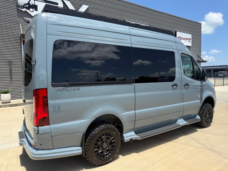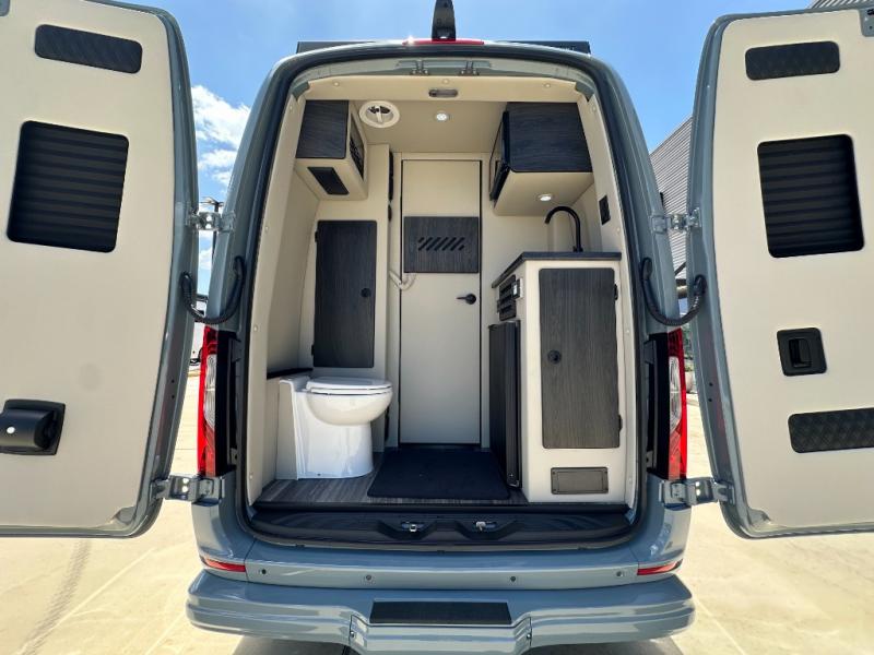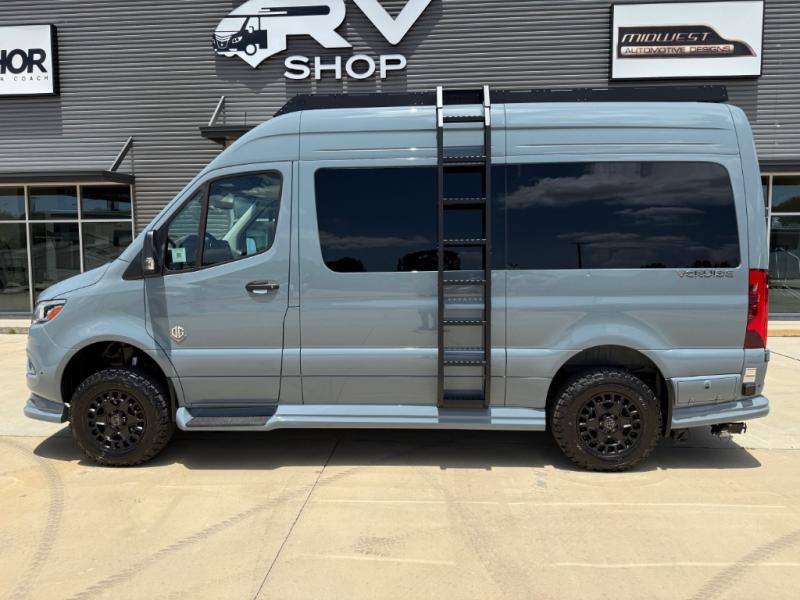 With any V-Cruise Class B diesel motorhome by OGV Luxury Coach, you will find high-quality and style at every turn. These Class B conversion vans feature color match bumpers and side moldings, a 5,000 lb. towing capacity, and an exterior utility bay with 30 Amp shore power, dual 110V outlets, an outside shower, plus tank fill and rinse for added convenience. The driver will love having a rear view camera for easy maneuvering, along with active brake assist, crosswind assist, and headlight assist. You'll love the interior of the V-Cruise with its handmade woodwork and satin finish, carpeted floor mats throughout the cabin, custom seating with double needle stitching, and more luxurious features. There is also an integrated touchscreen control system, plus a 100 Ah lithium auxiliary house battery and 2,000 watt inverter to keep you powered up.
