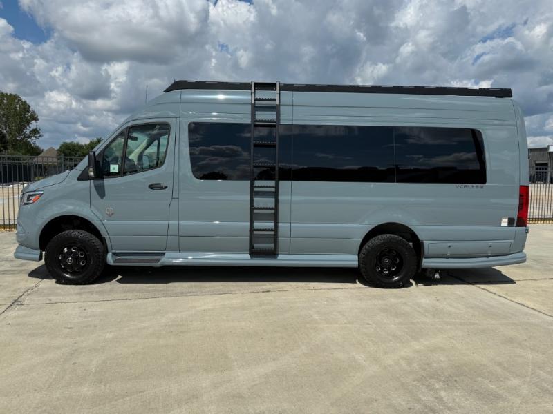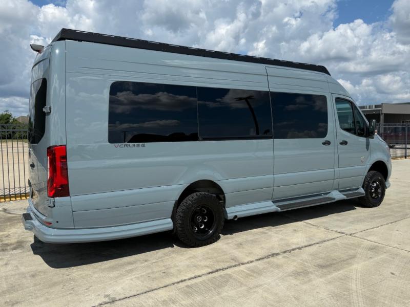 With any VCRUISE Class B diesel motorhome by OGV Luxury Coach, you will find high-quality and style at every turn. These Class B conversion vans feature color match bumpers and side moldings, a 5,000 lb. towing capacity, and an exterior utility bay with 30 Amp shore power, dual 110V outlets, an outside shower, plus tank fill and rinse for added convenience. The driver will love having a rear view camera for easy maneuvering, along with active brake assist, crosswind assist, and headlight assist. You'll love the interior of the VCRUISE with its carpeted floor mats throughout the cabin, custom seating with double needle stitching, and more luxurious features. There is also an integrated touchscreen control system, plus a 270 Ah lithium auxiliary house battery and 2,000 watt inverter to keep you powered up.