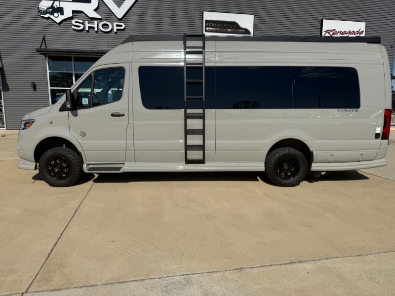 With any VCRUISE Class B diesel motorhome by OGV Luxury Coach, you will find high-quality and style at every turn. These Class B conversion vans feature color match bumpers and side moldings, a 5,000 lb. towing capacity, and an exterior utility bay with 30 Amp shore power, dual 110V outlets, an outside shower, plus tank fill and rinse for added convenience. The driver will love having a rear view camera for easy maneuvering, along with active brake assist, crosswind assist, and headlight assist. You'll love the interior of the VCRUISE with its carpeted floor mats throughout the cabin, custom seating with double needle stitching, and more luxurious features. There is also an integrated touchscreen control system, plus a 270 Ah lithium auxiliary house battery and 2,000 watt inverter to keep you powered up.