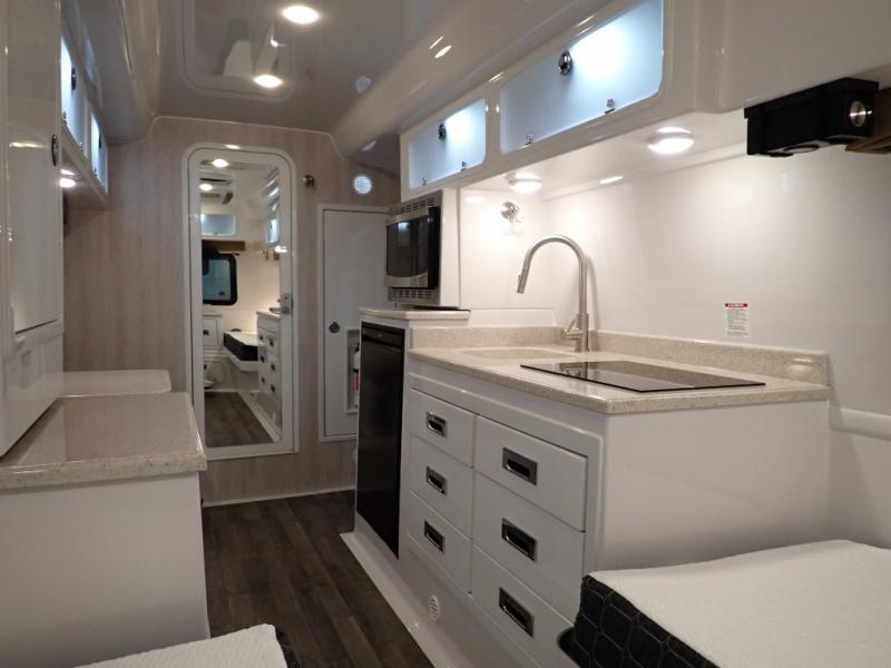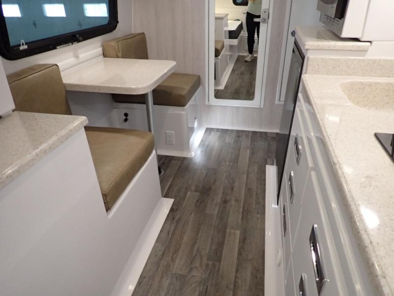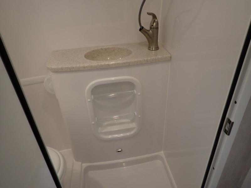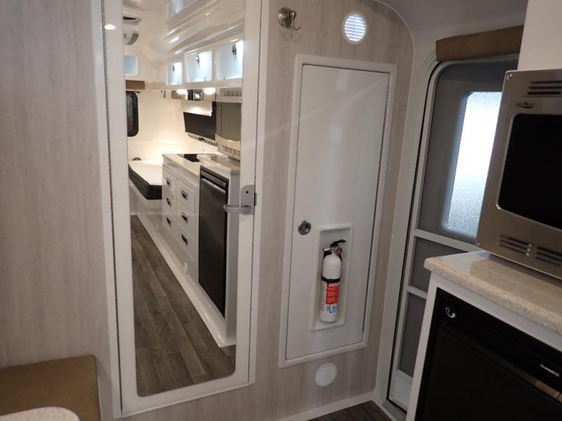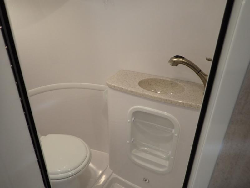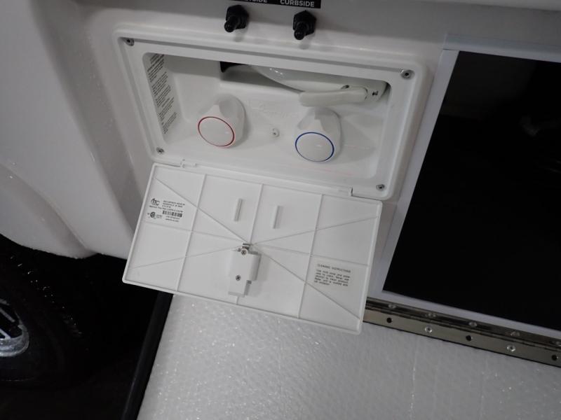 Choose your favorite campground and get ready for adventure in this travel trailer. The rear 75" x 30" beds can be set up for seating or sleeping space, and the side dinette converts to a 76" x 25" bed, allowing you to sleep three to four each night. A flush mount two burner stove and stainless steel microwave will let you make breakfast in the morning, and everyone can take turns cleaning up in the front wet bath. Here, you'll also find a brushed nickel faucet with a pull-out shower wand, a mirror tinted door, a towel bar and hook plus many more convenient features. You will also love the LED courtesy floor lights on this model, along with an LP ducted furnace, a lighted full-height wardrobe closet, and an AM/FM radio with USB, Bluetooth, and more!