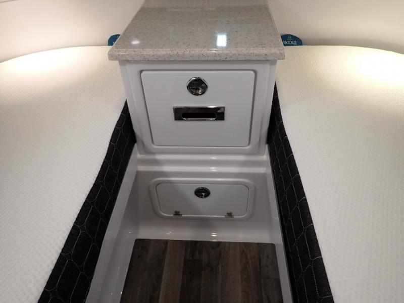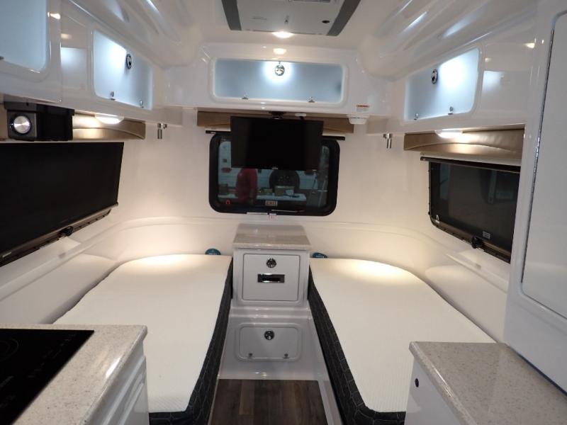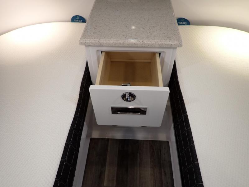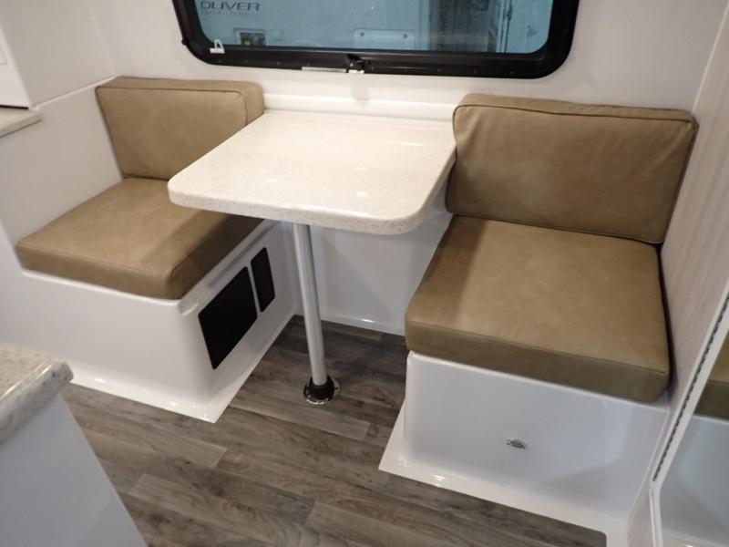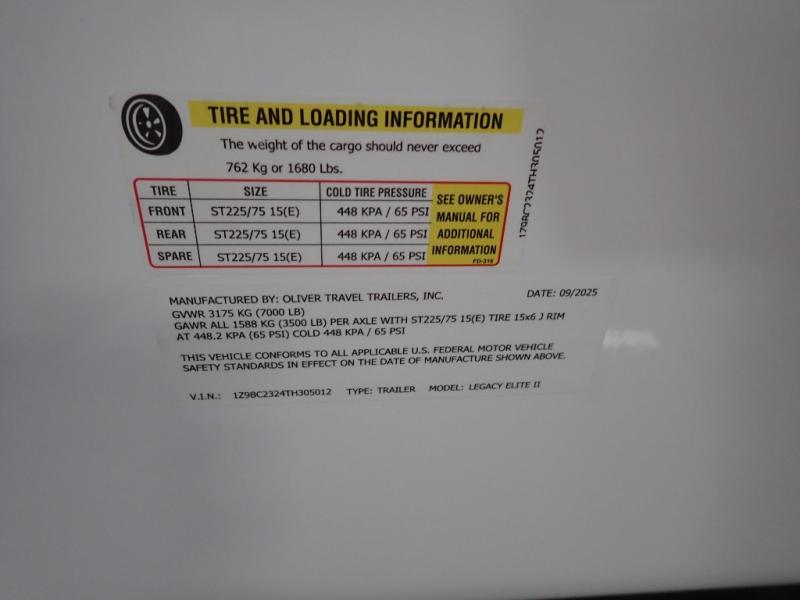With any Legacy Elite ll by Oliver Travel Trailers, you will enjoy many standard features that are considered upgrades on other travel trailers. The full custom molded interior and exterior shells add durability, and the holding tanks and drain pipes are enclosed between shells with heat to diminish freezing. There is also a Dexter E-Z Flex suspension for smooth towing and a three point power stabilizing system for added stability at the campground. The interior includes fiber-granite countertops, day/night window treatments, and frosted upper cabinet doors in the cabin and bathroom. There are also multiple charging stations to keep you powered up, added safety features for your peace of mind, and a Maxxfan deluxe remote control RV ventilation system to ensure your comfort. Included on the Platinum models are the Lithium Pro Package with more power features, the Electronics Package to keep you connected as you camp, and the Outdoor Package with added outdoor features to make camping easier than ever; see dealer for more details!